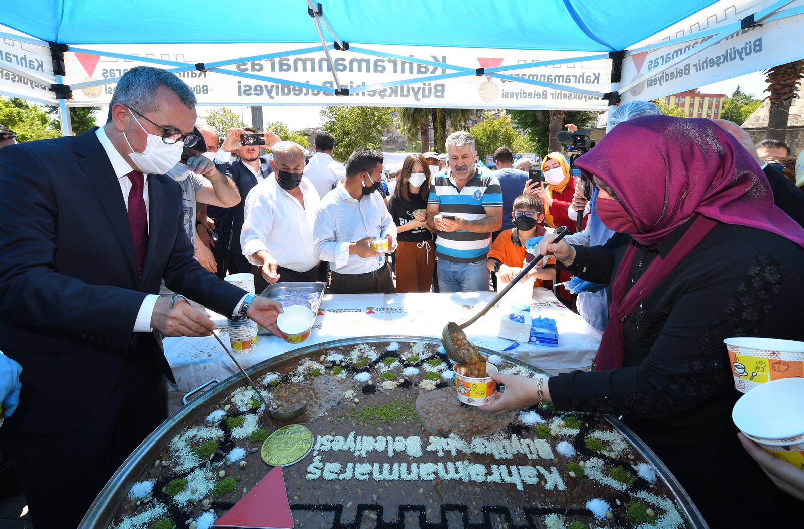 Kahramanmaraş Büyükşehir Belediye Başkanı Hayrettin Güngör, Ulu Camii önünde gerçekleştirilen aşure dağıtımı etkinliğine katıldı. Muharrem ayı dolayısıyla düzenlenen etkinlikte, vatandaşlara aşure ikram edildi. Cuma namazı sonrası düzenlenen etkinlikte konuşan Büyükşehir Belediye Başkanı Hayrettin Güngör, Muharrem ayının hayırlara vesile olmasını diledi. Başkan Güngör, “Mübarek Muharrem ayımız vesilesiyle geleneksel aşure dağıtımını yapıyoruz. Cuma namazı çıkışı davetimize icabet eden tüm hemşehrilerime teşekkür ediyorum. Cumamız, Muharrem ayımız mübarek olsun” ifadelerini kullandı. AK Parti İl Başkanı Fırat Görgel ise, “Büyükşehir Belediye’miz bugün bu tarihi mekânda aşure dağıtıyor. Tabii bu ay bizim için çok önemli. Allah’a şükürler olsun bugün hemen her camide aşure ikramı var” diye konuştu.