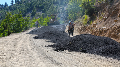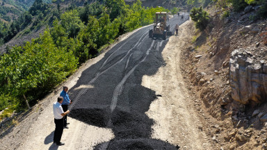 Kahramanmaraş Büyükşehir Belediyesi, Onikişubat’ın Çokran ve Kalekaya mahallelerini birbirine bağlayan 6,5 kilometrelik grup yolunda sıcak asfalt çalışması gerçekleştiriyor.