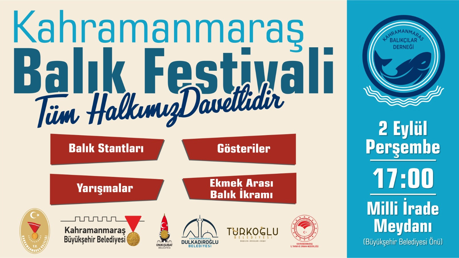 Kahramanmaraş Büyükşehir Belediyesi’nin katkılarıyla düzenlenecek Balık Festivali başlıyor. Kahramanmaraş Valiliği, Onikişubat, Dulkadiroğlu, Türkoğlu ilçe belediyeleri ve Balıkçılar Derneği ile işbirliği halinde yapılacak organizasyon 2 Eylül Perşembe günü vatandaşlarla buluşacak. Türkiye’de ilk kez düzenlenecek festival Milli İrade Meydanı’nda saat 17.00’da gerçekleştirilecek. Tatlı su balıkçılığı üretimi noktasında 2. sırada yer alan Kahramanmaraş’ta düzenlenecek etkinliğin, ticari potansiyeli de artırması hedefleniyor. Çocuklar için balık tutma yarışmaları, halkoyunları, geleneksel okçuluk ve balık ikramı gibi bir dizi etkinliğin gerçekleştirileceği festivale balık tutkunları ve vatandaşlar ücretsiz katılım sağlayabilecek.
