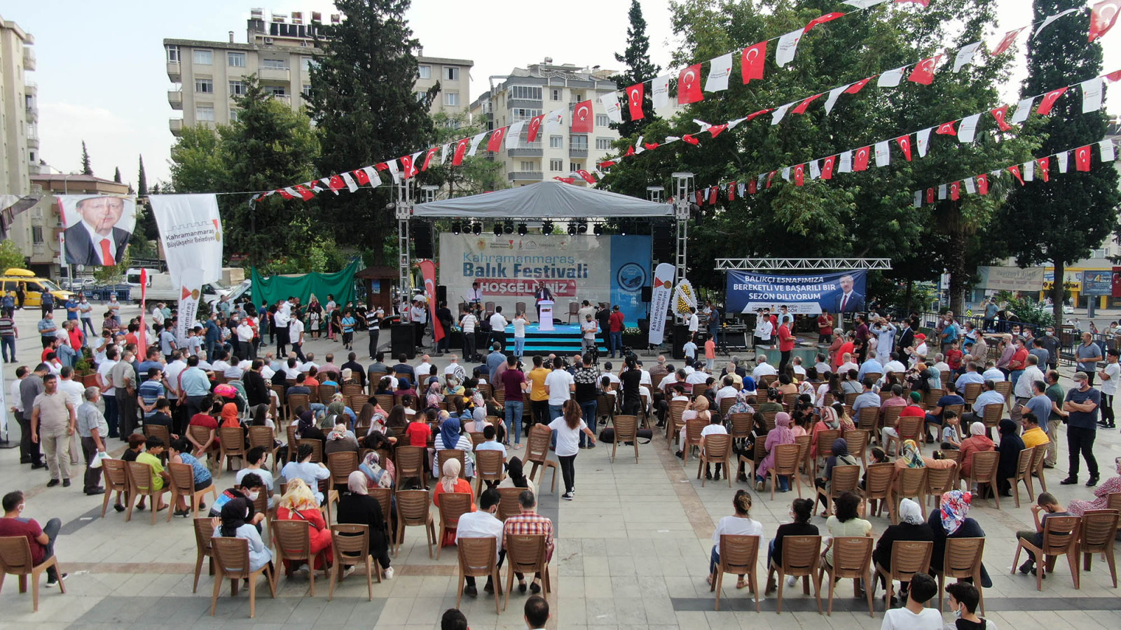 Kahramanmaraş Büyükşehir Belediyesi’nin destekleriyle Kahramanmaraş Balık Festivali düzenlendi. Balıkçılar Derneği organizasyonunda, Milli İrade Meydanı’nda gerçekleştirilen etkinliğe Vali Ömer Faruk Coşkun, Büyükşehir Belediyesi Başkanvekili Ali Çam, AK Parti Milletvekilleri Ahmet Özdemir ve İmran Kılıç, ilçe belediye başkanları, STK temsilcileri ile çok sayıda vatandaş katıldı. Coşku dolu etkinlikte, yerel halk oyunları ve geleneksel okçuluk gösterisi de gerçekleştirilirken, miniklere ise süs balıkları hediye edildi.