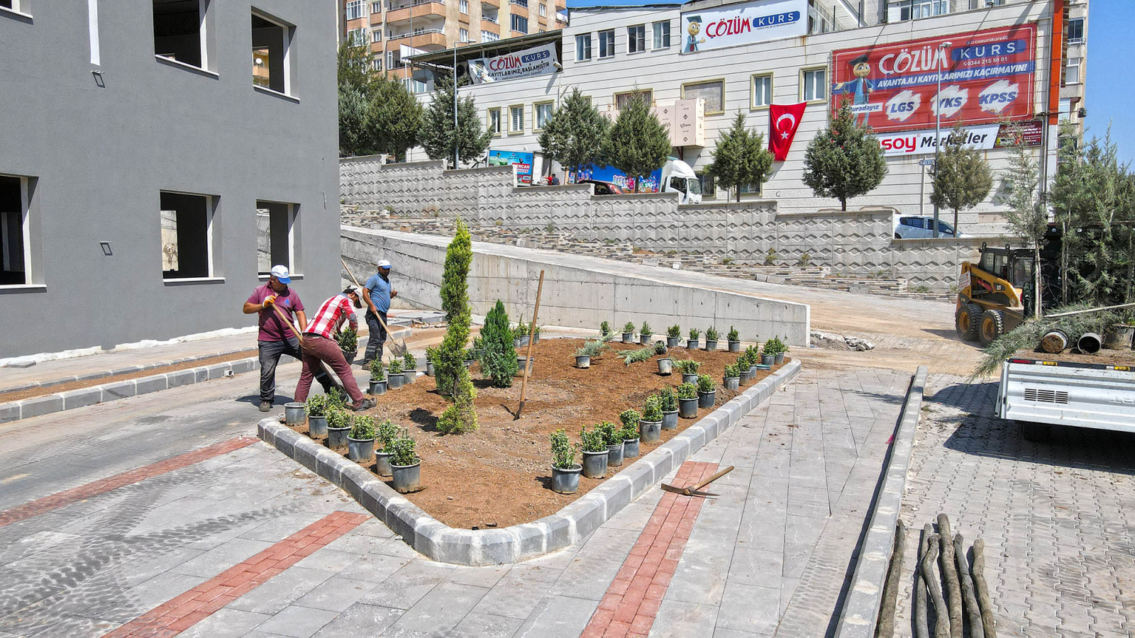 Kahramanmaraş Büyükşehir Belediyesi, şehir genelinde çevre düzenleme uygulamalarını aralıksız sürdürüyor. Bir süre önce Onikişubat ilçesi Mimar Sinan Mahallesi’nde yer alan Zekeriya Tanrıverdi Camii çevresinde de başlatılan çalışmalarda parke, bazalt ve bordür uygulamaları tamamlanmıştı. Yapımı devam eden 3 bin metrekare alana sahip camide bu defa bitkilendirme ve peyzaj çalışmaları gerçekleştirildi. Şehrin en yoğun arterlerinden Alparslan Türkeş Bulvarı bitişiğinde bulunan cami çevresinde, farklı türlerden minyatür ağaçlar, güller ve çalılar olmak üzere onlarca bitki toprakla buluşturuldu.