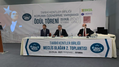İstanbul Yenikapı’da düzenlenen Tarihi Kentler Birliği 2021 Yılı Olağan İkinci Toplantısı’nda konuşan Başkan Hayrettin Güngör, “Kırsal Miras ve Kent İlişkisi temasıyla verimli bir toplantı geçirdik. Güzel ülkemizin mozaiği tarih kokan şehirlerimize, belediye başkanlarımıza ve STK’larımıza teşekkür ediyorum” dedi.