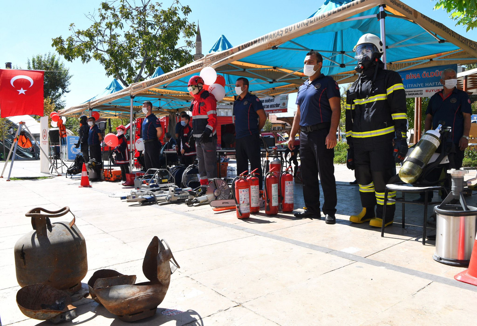 Kahramanmaraş Büyükşehir Belediye Başkanı Hayrettin Güngör, İtfaiye Haftası dolayısıyla Demokrasi Meydanı’nda açılan tanıtım stantlarını ziyaret etti. Burada İtfaiye personelleriyle de bir araya gelen Başkan Güngör, “Öncelikle bütün kahraman itfaiye teşkilatlarımızın haftasını tebrik ediyorum, kendilerine görevlerinde başarılar diliyorum. Tabi gönül istiyor ki hiç doğal afet olmasın. Ama bu da hayatın gerçeklerinden biri. Sanayi ağırlıklı üretim yapılan Kahramanmaraş’ımızda bu tip yangınlar ve kırsal bölge yangınları yaşanabiliyor. Hamdolsun, Büyükşehir İtfaiyemiz yangınlarda süratle müdahale ediyor. Doğru sevk ve idare ile büyük yangınların önüne geçiliyor” ifadelerini kullandı.