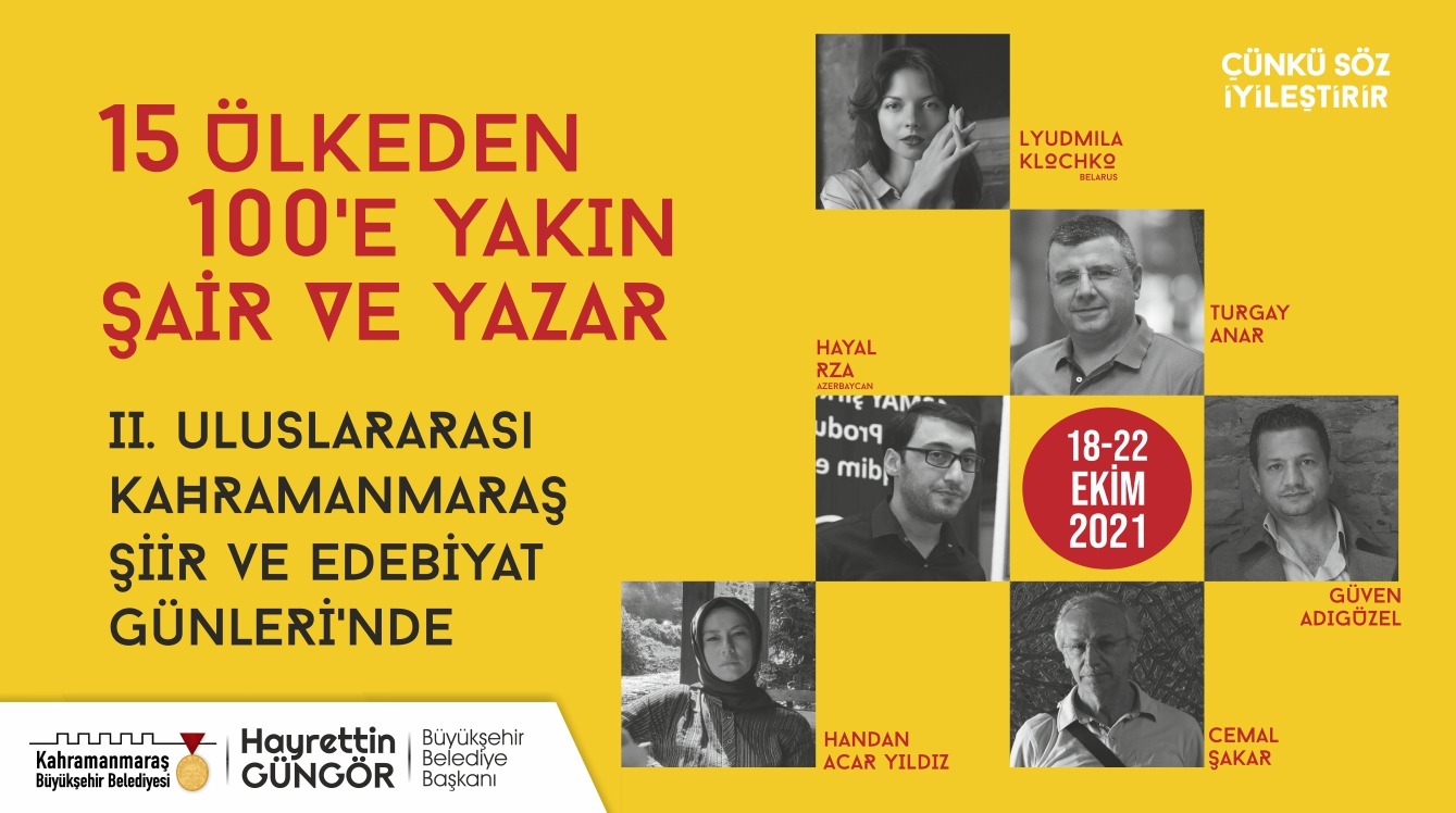 Büyükşehir Belediyesi tarafından düzenlenen “2. Uluslararası Kahramanmaraş Şiir ve Edebiyat Günleri” 18 Ekim Pazartesi günü başlıyor. 5 gün sürecek programlarda 15 ülkeden şair ve yazar 100’e yakın etkinlikle Kahramanmaraşlılarla buluşacak. Etkinlikler kapsamında Kahramanmaraş Edebiyat Ödülleri de sahiplerini bulacak.