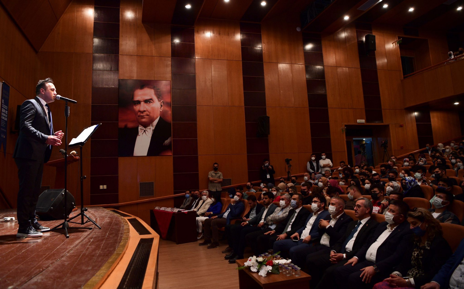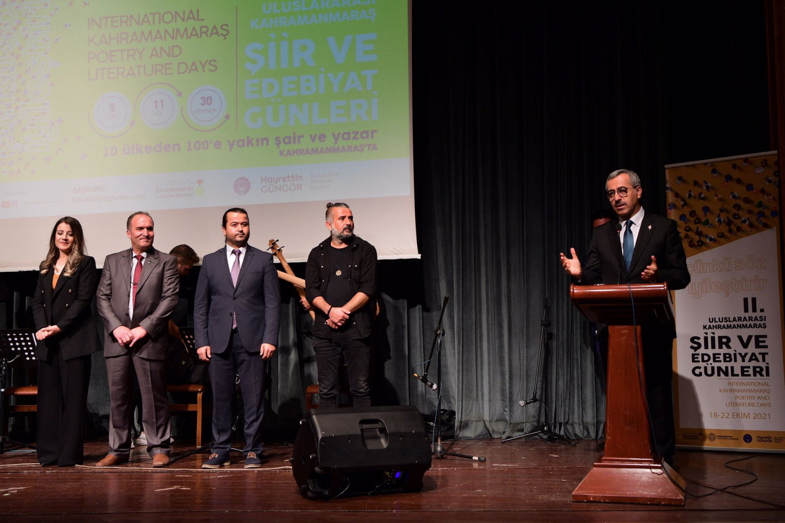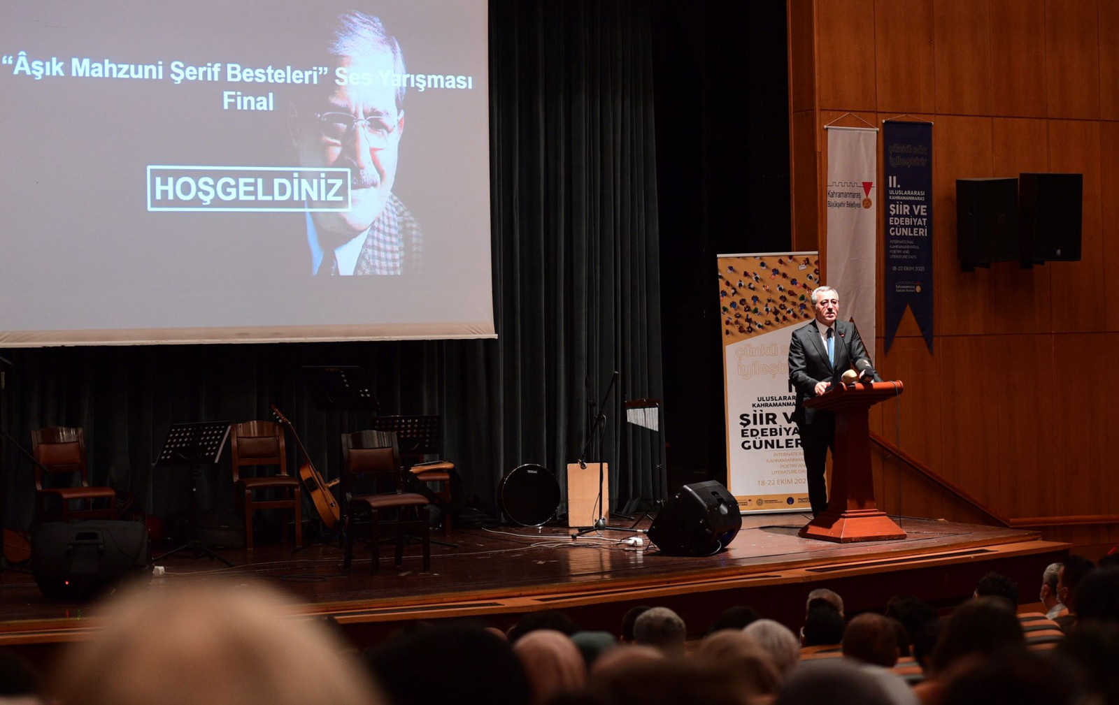 2. Uluslararası Şiir ve Edebiyat Günleri kapsamında düzenlenen Aşık Mahzuni Şerif Ses Yarışması finalinde konuşan Büyükşehir Belediye Başkanı Hayrettin Güngör, “Bu yarışmayı sadece şehrimizin değil Anadolu’nun en büyük halk ozanlarından Âşık Mahzuni Şerif adına düzenledik. Her sanatçımız son derece güzel bir performans sergiledi. Ben dereceye giren ve katılan tüm sanatçılarımızı tebrik ediyorum. 2. Uluslararası Kahramanmaraş Şiir ve Edebiyat Günleri kapsamında düzenleyeceğimiz ödül törenine de bütün hemşehrilerimizi davet ediyorum” dedi.