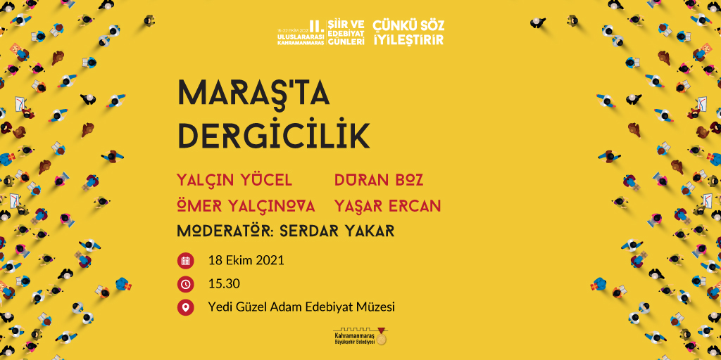 Açılış sonrası etkinliklerin Yedi Güzel Adam Edebiyat Müzesi’nde devam edeceği aktarılarak, “Açılış ve Ödül Töreni’nin ardından etkinlikler saat 15.30’da Yedi Güzel Adam Edebiyat Müzesi’nde Yalçın Yücel, Ömer Yalçınova, Duran Boz ve Yaşar Ercan gibi isimlerin Serdar Yakar moderatörlüğünde bir araya geleceği Maraş’ta Dergicilik programıyla devam edecek. Necip Fazıl Kısakürek Kültür Merkezi’nde ise 18.00’da Yunus, Kendime Söylüyorum; Emre, Sen İşit programıyla İhsan Fazlıoğlu kültür sanat dostlarıyla buluşacak. Programın ardından Mehmet Akif Kısakürek Kültür Merkezi’nde 20.00’da Serdar Tuncer ile Şiir Gecesi etkinliği düzenlenecek. Etkinliklerimize tüm vatandaşlarımız davetlidir” ifadelerine yer verildi.