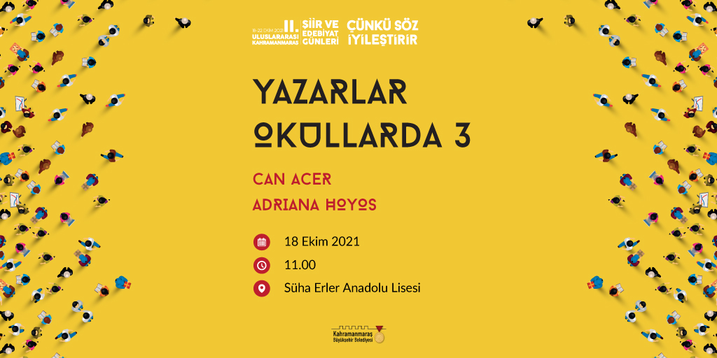 Kahramanmaraş Büyükşehir Belediyesi’nin düzenlediği 2. Uluslararası Şiir ve Edebiyat Günleri için geri sayım başladı. Heyecanla beklenen etikliklere 18 Ekim Pazartesi (yarın) start veriliyor. Toplamda 15 ülkeden yazar ve şairlerin katılımıyla, 5 gün boyunca 100’e yakın etkinliğin kültür sanat dostlarıyla buluşacağı programın ilk gününde 7 etkinlik birden düzenlenecek. Kültür Spor ve Turizm Dairesi Başkanlığı’ndan etkinliklere ilişkin yapılan açıklamada; “2. Uluslararası Kahramanmaraş Şiir ve Edebiyat Günleri etkinliklerimiz yarın başlıyor. Takvimimiz kapsamında ilk olarak Yazarlar Okullarda söyleşileri düzenlenecek. Abdullah Çinkay Anadolu Lisesi’nde saat 10.00’da başlayacak ilk etkinlikte, Mustafa Köneçoğlu ve Yekta Jacquelin öğrencilerle buluşacak.  Saat 11.00’da ise yazarlarımız Yasin Mortaş ve Lyudmila Klochko Şehit İdari Ataşe Galip Özmen M.T.A.L ‘de, yine aynı saatte Süha Erler Anadolu Lisesi’nde yazarlarımız Can Acer ve Adriana Hoyos öğrencilerle bir araya gelecek” ifadeleri kullanıldı.