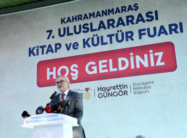 Şiirin ve edebiyatın başkenti Kahramanmaraş’ta düzenlenen 7’inci Uluslararası Kitap ve Kültür Fuarı açılış töreninde konuşan Büyükşehir Belediye Başkanı Hayrettin Güngör, “Şiir ve Edebiyatın Başkenti Kahramanmaraş’ımızda 7. Uluslararası Kitap ve Kültür Fuarımızın açılışını gerçekleştiriyoruz. Bu yıl 200 binin üzerinde katılımcı hedefliyoruz. Şehrimize hayırlı olsun” diye konuştu.