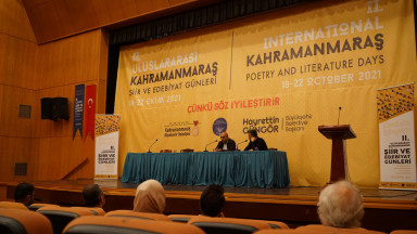 Kahramanmaraş Büyükşehir Belediyesi, “2. Uluslararası Şiir ve Edebiyat Günleri” son gününde iki önemli ismi daha sanatseverlerle buluşturdu. Şehir genelinde 5 gün boyunca 15 ülkeden yazar ve şairin katılımıyla 100’e yakın etkinliğin düzenlendiği programlar kapsamında bu defa sinema konuşuldu. 22. Ankara Uluslararası Film Festivali’nde “Gölgeler ve Suretler” filmiyle En İyi Film ve En İyi Yönetmen ödülü alan Derviş Zaim ve Türk Sineması eksenli yayımlarıyla yakından tanınan Suat Koçer, “Her Şeyi Anlatmak Mümkün Mü?” sorusuna cevap aradı. Katılımcıların ilgiyle takip ettiği programda sinemanın edebiyatla ilişkisi farklı perspektiflerden değerlendirildi.