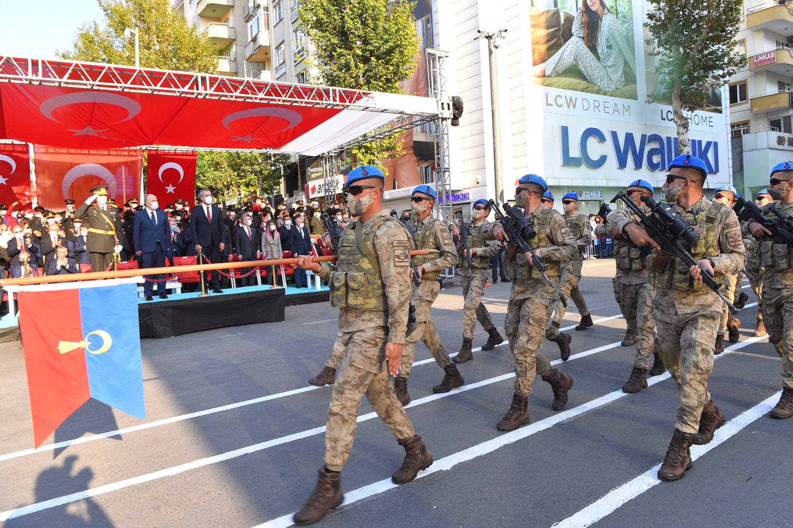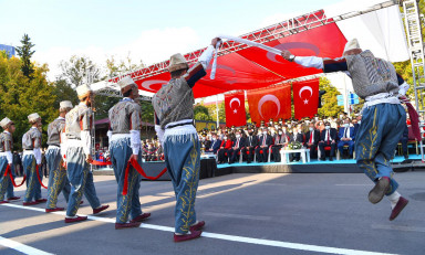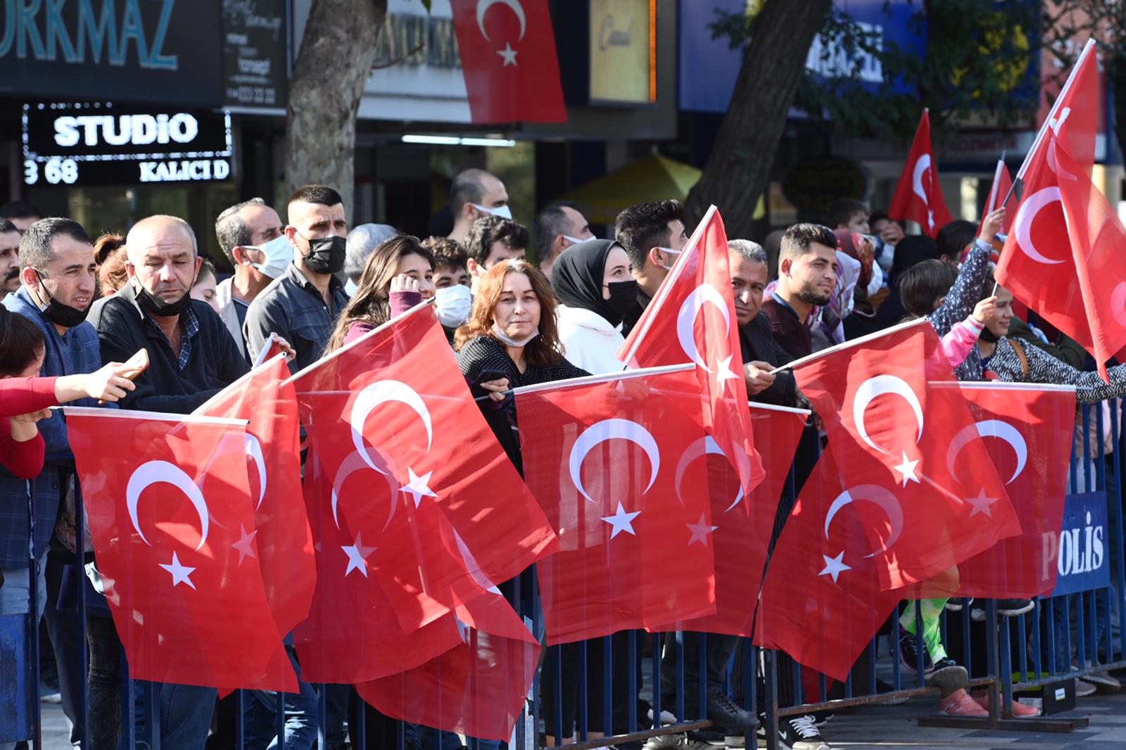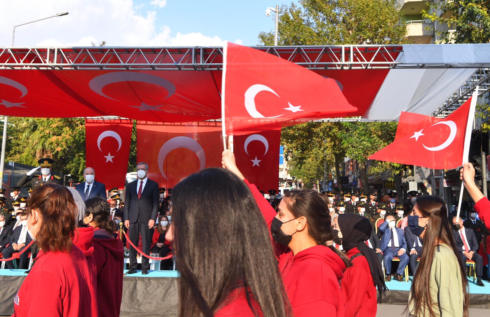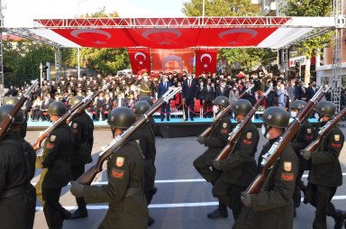 Büyükşehir Belediye Başkanı Hayrettin Güngör, “Cumhuriyetimizin 98. Yılını kahraman şehrimizde büyük bir coşkuyla kutladık. Ülkemiz hamdolsun güçlü adımlarla huzur ve refah dolu yarınlara yürüyor. Gazi Mustafa Kemal Atatürk başta olmak üzere tüm kahraman ecdadımızı rahmet ve minnetle anıyorum. Cumhuriyet Bayramımız kutlu olsun” dedi. Öğrencilerin şiirler okumasının ardından Suzan ve Abdulhakim Bilgili Halk Eğitim Merkezi’nin halk oyunları gösterisinin yapıldığı program, öğrenciler, izciler, halk oyunları ekibi, gaziler ve askeri birliklerin geçit töreni ile sona erdi.