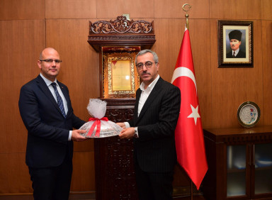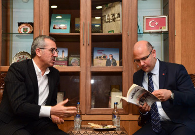Kahramanmaraş Büyükşehir Belediye Başkanı Hayrettin Güngör, 7. Uluslararası Kahramanmaraş Kitap ve Kültür Fuarı kapsamında düzenlenen “Net Konuşalım” programına katılmak üzere için şehre gelen AK Parti Genel Başkan Yardımcısı ve Bilgi ve İletişim Teknolojileri Başkanı Dr. Ömer İleri ile beraberindeki heyeti ağırladı. Programdan önce bir dizi ziyaret gerçekleştiren heyetin ilk durağı Yedi Güzel Adam Edebiyat Müzesi olurken, ardından Sütçü İmam Üniversitesi bünyesindeki Teknokent’te de Rektör Prof. Dr. Niyazi Can eşliğinde teknoloji atölyeleri ziyaret edildi. Program sonunda açıklamada bulunan Başkan Güngör, Kahramanmaraş’ın AR-GE ile daha fazla üreteceğini, yenilik ile daha da gelişeceğini ifade etti. Ardından KAFUM’daki fuar alanına hareket eden heyet, kültür stantlarını ziyaret ederek katılımcı yazarlar ve vatandaşlarla bir süre sohbet etti.