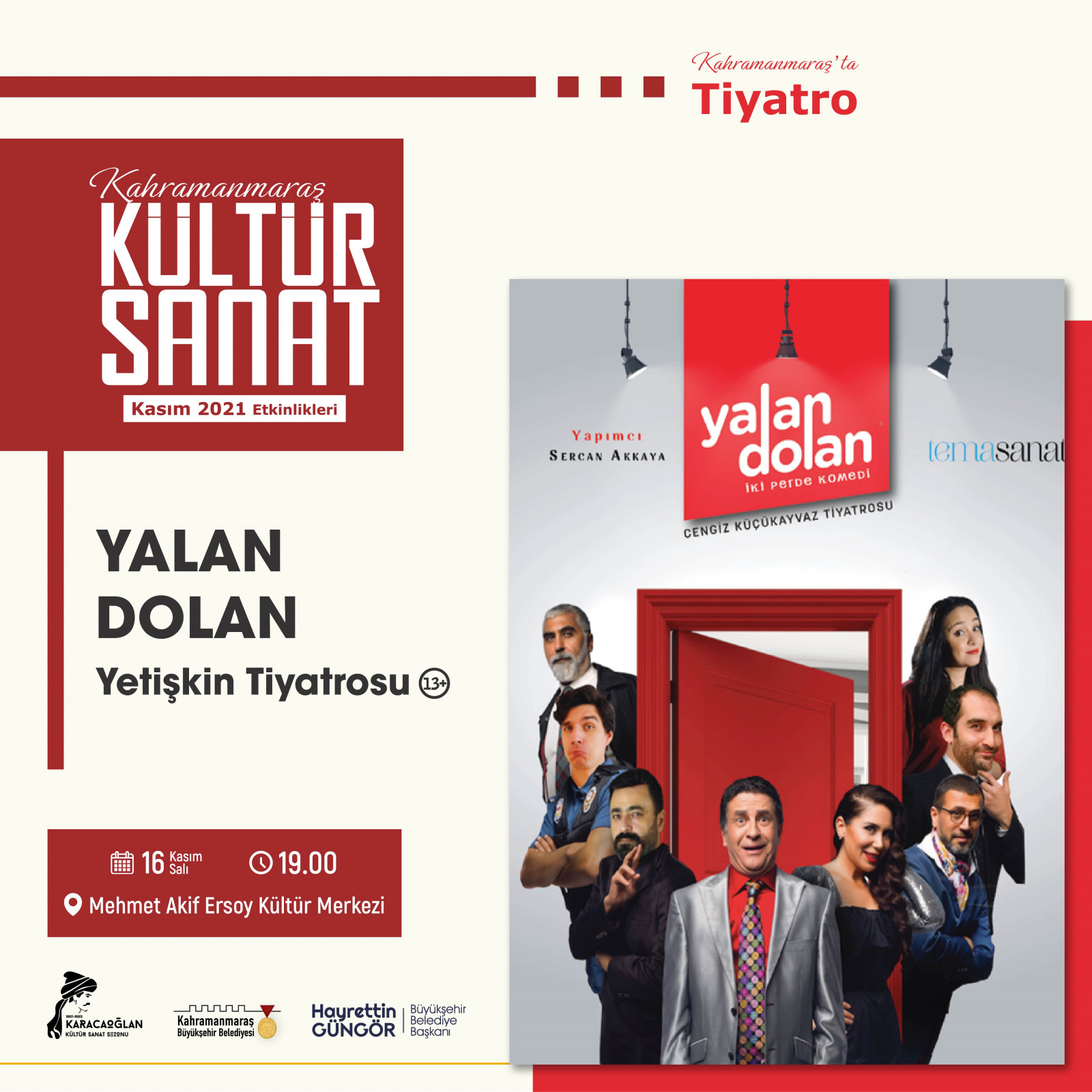16 Kasım Salı / 19.00 – Mehmet Akif Ersoy Kültür Merkezi – Cengiz Küçükayvaz Tiyatrosu (Yalan Dolan – Yetişkin Oyunu)