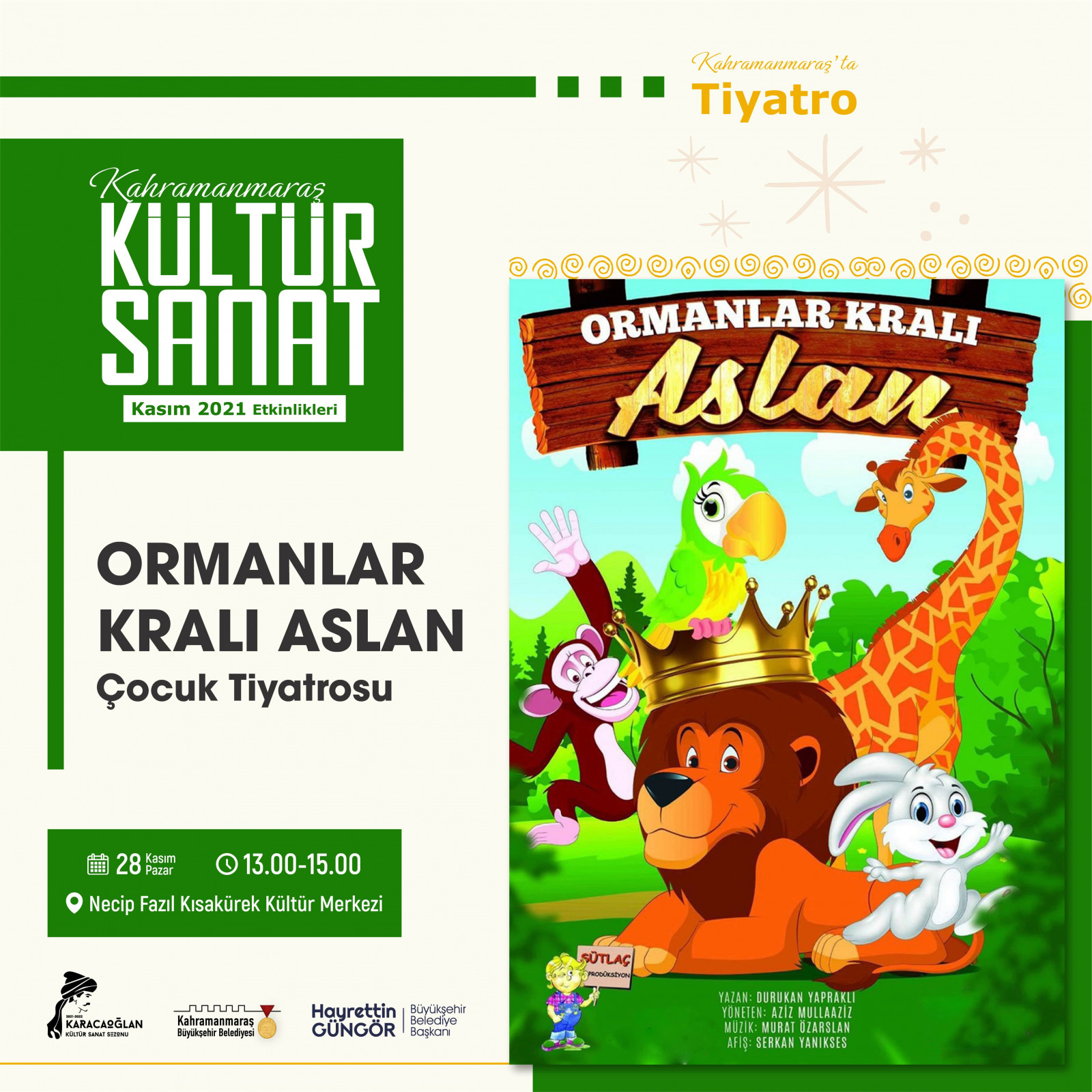 28 Kasım Pazar / 13.00 / 15.00 (2 Seans) – Necip Fazıl Kısakürek Kültür Merkezi – Ormanlar Kralı Aslan (Çocuk Tiyatrosu)