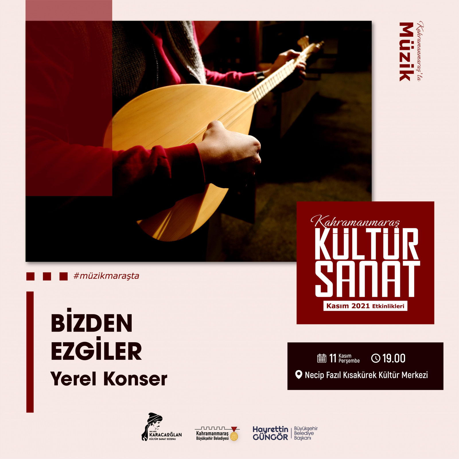 11 Kasım Perşembe / 19.00 – Necip Fazıl Kısakürek Kültür Merkezi – Bizden Ezgiler (Yerel Konser)
