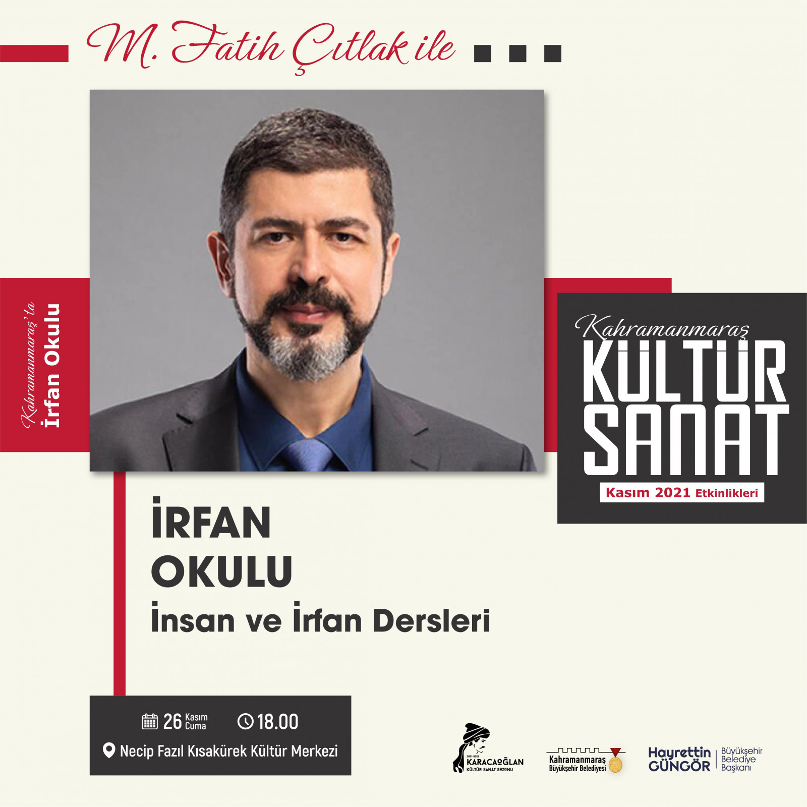 26 Kasım Cuma / 18.00 – Necip Fazıl Kısakürek Kültür Merkezi – M. Fatih Çıtlak İle İrfan Okulu (İnsan ve İrfan Dersleri)