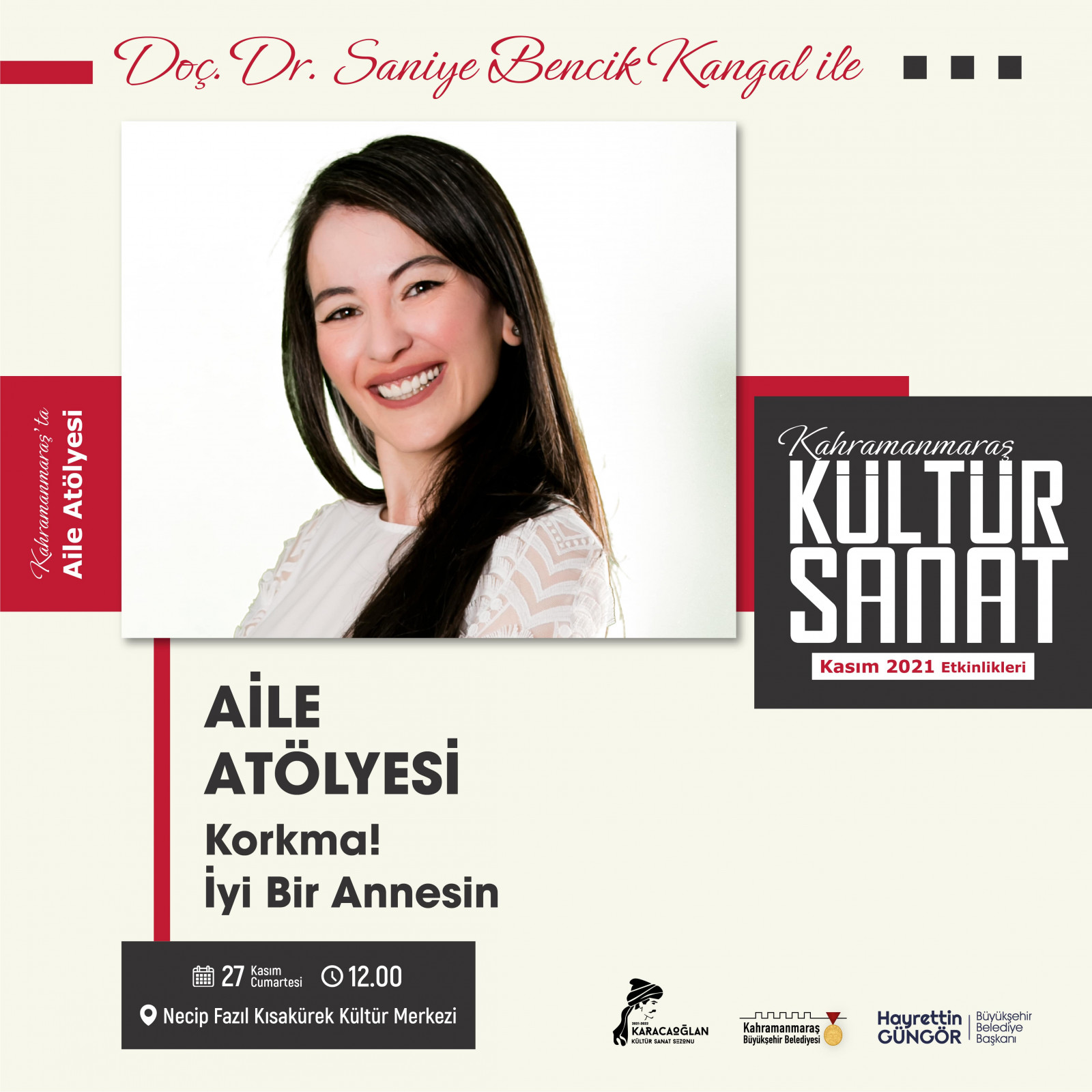 27 Kasım Cumartesi / 12.00 – Necip Fazıl Kısakürek Kültür Merkezi – Doç. Dr. Saniye Bencik Kangal İle Aile Atölyesi (Korkma! İyi Bir Annesin)