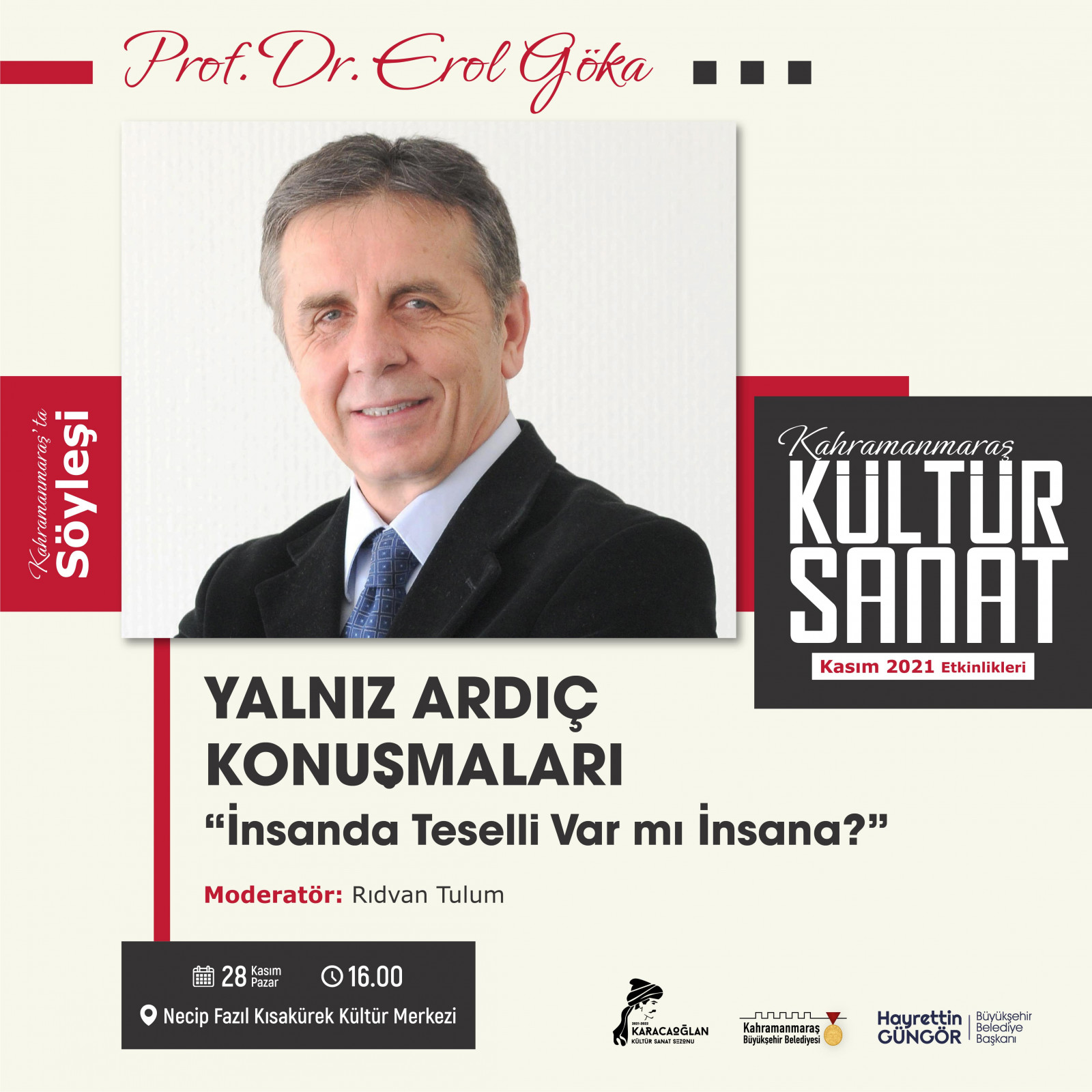 28 Kasım Pazar / 16.00 – Necip Fazıl Kısakürek Kültür Merkezi – Prof. Dr. Erol Göka ile Yalnız Ardıç Konuşmaları (İnsanda Teselli Var Mı İnsana?)