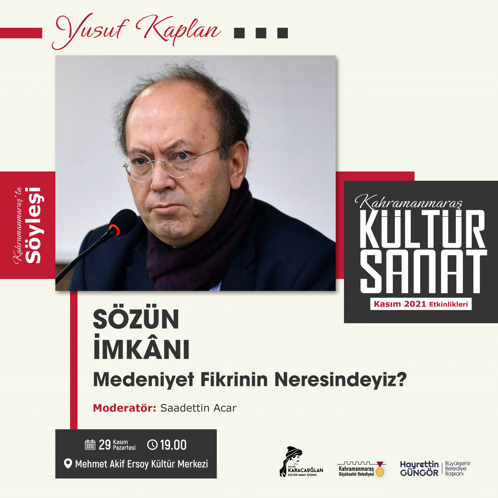 29 Kasım Pazartesi / 19.00 – Mehmet Akif Ersoy Kültür Merkezi – Yusuf Kaplan İle Sözün İmkânı (Medeniyet Fikrinin Neresindeyiz?)
