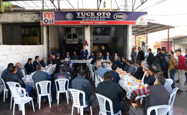 Küçük Sanayi Sitesi’nde oda başkanları ve esnaflarla bir araya gelen Büyükşehir Belediye Başkanı Hayrettin Güngör, “Burada hamdolsun her geçen yıl büyüyen bir sektör var. Hem yeni yerleşke, hem de alt ve üstyapı yatırımlarıyla istihdamın artmasını hedefliyoruz. Öngördüğümüz 50 Milyon TL’lik yatırımın büyük bölümünü gerçekleştirdik. İnşallah önümüzdeki yıl Küçük Sanayi Sitemizin altyapı ve yollarını tamamen yenilemiş olacağız” diye konuştu.