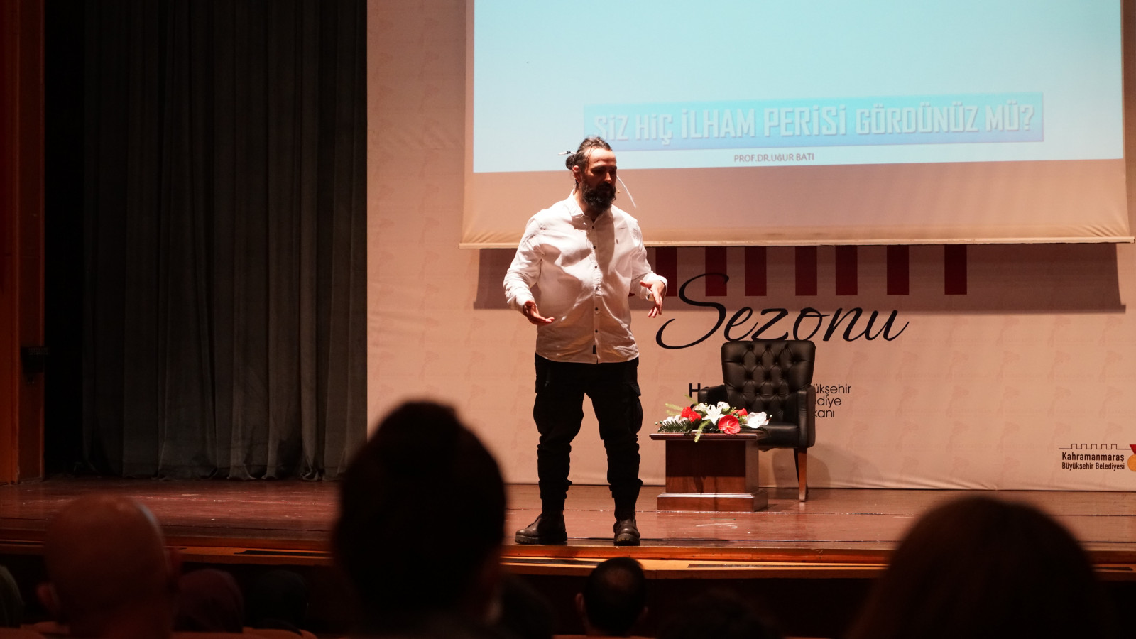 Kahramanmaraş Büyükşehir Belediyesi tarafından düzenlenen Karacaoğlan Kültür Sanat Sezonu kapsamında Akademisyen – Yazar Prof. Dr. Uğur Batı ile söyleşi programı gerçekleştirildi. Necip Fazıl Kısakürek Kültür Merkezi’nde düzenlenen programda ‘Siz hiç ilham perisi gördünüz mü?’ sorusuna farklı perspektiflerden cevap arandı. Kültür sanat dostlarının yoğun ilgisiyle gerçekleştirilen programda, ‘Metaverse’ gibi yenilikçi teknolojilerin hayatın anlamında oluşturacağı potansiyel değişikliklere değinen Prof. Dr. Uğur Batı; ziyaretçilerin sorularına da yanıt verdi.
