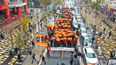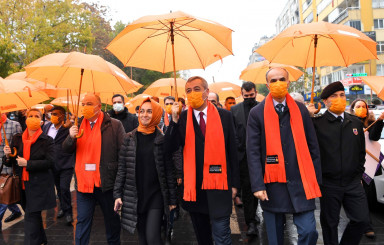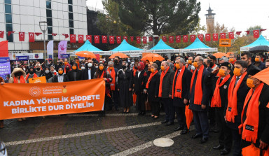 Kahramanmaraş Büyükşehir Belediye Başkanı Hayrettin Güngör, 25 Kasım Kadına Yönelik Şiddete Karşı Mücadele ve Uluslararası Dayanışma Günü kapsamında düzenlenen etkinliklere katıldı. Büyükşehir Belediyesi, Valilik ile Aile ve Sosyal Hizmetler İl Müdürlüğü işbirliğiyle gerçekleştirilen etkinlikler, Valilik önünden yürüyüşle başladı. Başkan Güngör’ün yanı sıra Vali Ömer Faruk Coşkun, il protokolü ve STK temsilcilerinden oluşan kortej, farkındalık oluşturma amacıyla turuncu atkı ve şemsiyelerle Valilik önünden Atatürk Meydanı’na kadar yürüdü.