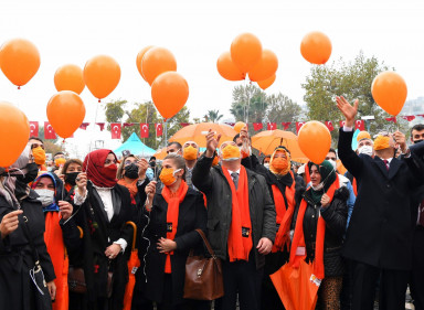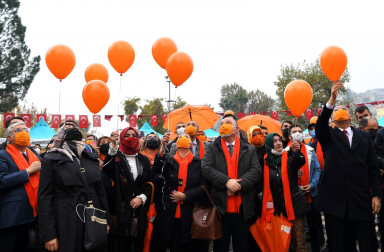 Şiddetin rakamlarla ifade edilemeyeceğini belirten Başkan Güngör konuşmasını, “Tek bir kadına kalkan el hepimize kalkıyor, bir kadının uğradığı şiddet iliklerimize kadar canımızı acıtıyor. Kahramanmaraş Büyükşehir Belediyesi olarak bizler de şehrimizdeki bu tip hadiselerin önüne geçmek maksadıyla azami gayret sarf ediyoruz. Bir yandan kadınlarımıza yönelik ücretsiz psikososyal destekler sağlarken, diğer yandan atölyeler ve meslek edindirme kurslarımızla ekonomik özgürlüklerini sağlayabilecekleri alanlar açıyoruz. Paydaş kurumlarımızla birlikte oluşturduğumuz projelerle tek arzumuz, kadınlarımızın daha güçlü olmalarını sağlamaktır. Bugün bir farkındalık oluşturma amacıyla toplu taşım araçlarımızı kadınlar için ücretsiz hale getirdik. Bu anlamlı günde, yeni dramların artık yaşanmadığı bir dünya diliyorum” şeklinde tamamladı. Büyükşehir Belediye Başkanı Hayrettin Güngör’ün konuşmalarının ardından katılımcılar kadına yönelik şiddete hayır diyerek turuncu balonları gökyüzüne bıraktı.