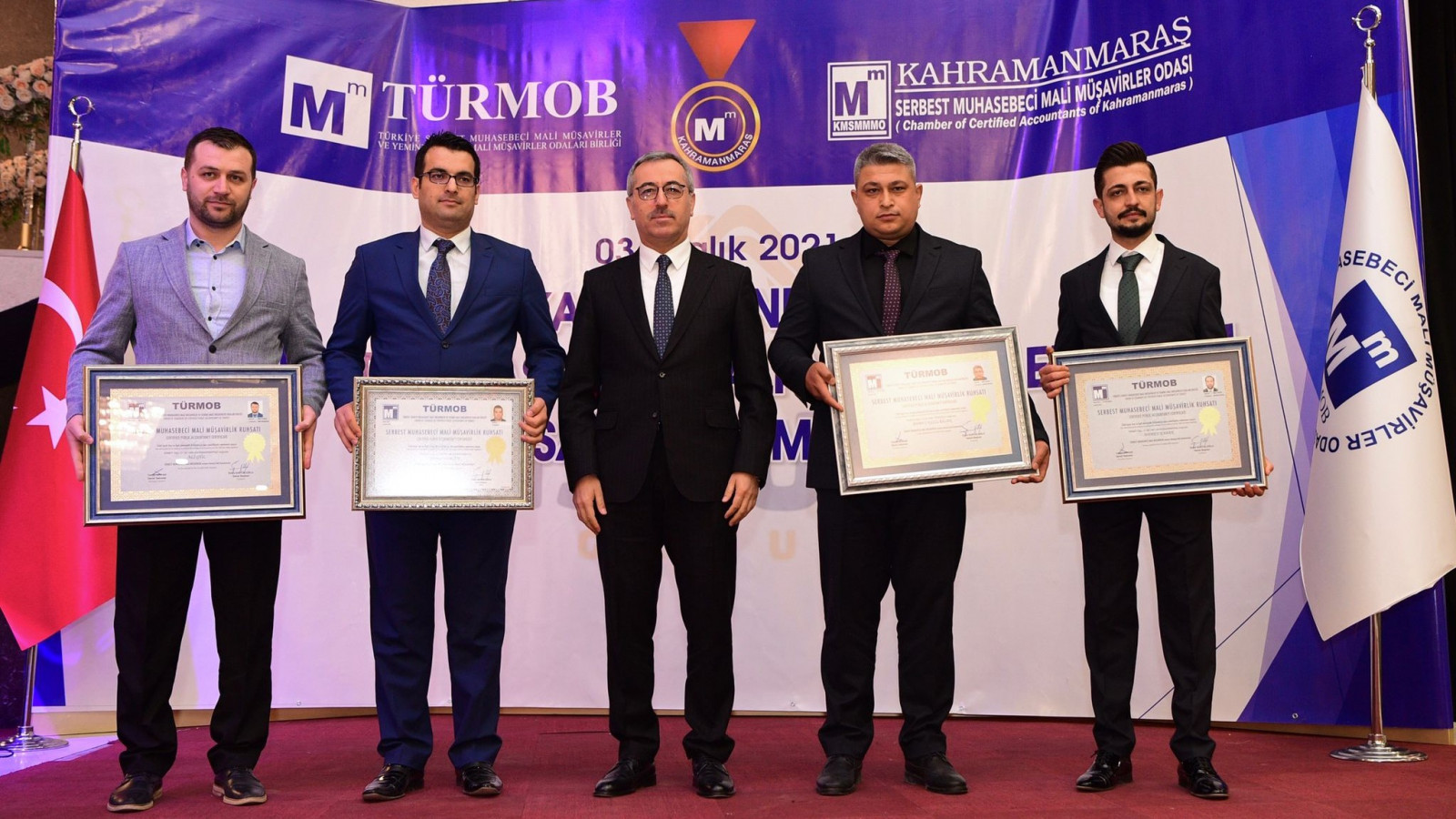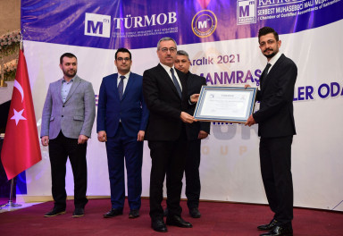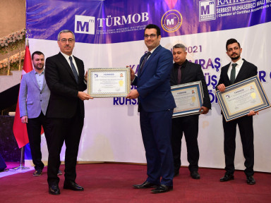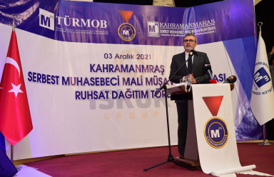 Kahramanmaraş Büyükşehir Belediye Başkanı Hayrettin Güngör, TÜRMOB ve Kahramanmaraş Serbest Muhasebeci Mali Müşavirler Odası iş birliğinde düzenlenen Ruhsat Dağıtım Töreni'ne katıldı. Düzenlenen programa Vali Ömer Faruk Coşkun, AK Parti Grup Başkanvekili Mahir Ünal, TÜRMOB Genel Başkanı Emre Kartaloğlu, Kahramanmaraş Serbest Muhasebeci Mali Müşavirler Odası Başkanı Atilla Sarıyıldız, protokol üyeleri, iş insanları ve ruhsat almaya hak kazanan mali müşavirler katıldı. Başkan Güngör programda yaptığı konuşmada, “En zorlu staj dönemlerinden birisi Mali Müşavirlik mesleğindedir. Üç yıllık bir staj dönemini başarıyla tamamlayıp bu ruhsatları almaya hak kazandınız. Mali Müşavirler vergi hukuku gibi özel konularda millet ve devlet arasında sarsılmaz bir köprü vazifesi görüyor. Meslek yaşamlarınızda başarılar diliyorum” diye konuştu. Program, lisans eğitimlerinin ardından stajlarını tamamlayarak ruhsatlarını almaya hak kazanan üyelere ruhsatlarının takdim edilmesi ve TÜRMOB Genel Başkanı Emre Kartaloğlu tarafından oda başkanlarına şilt takdimi ile sona erdi.