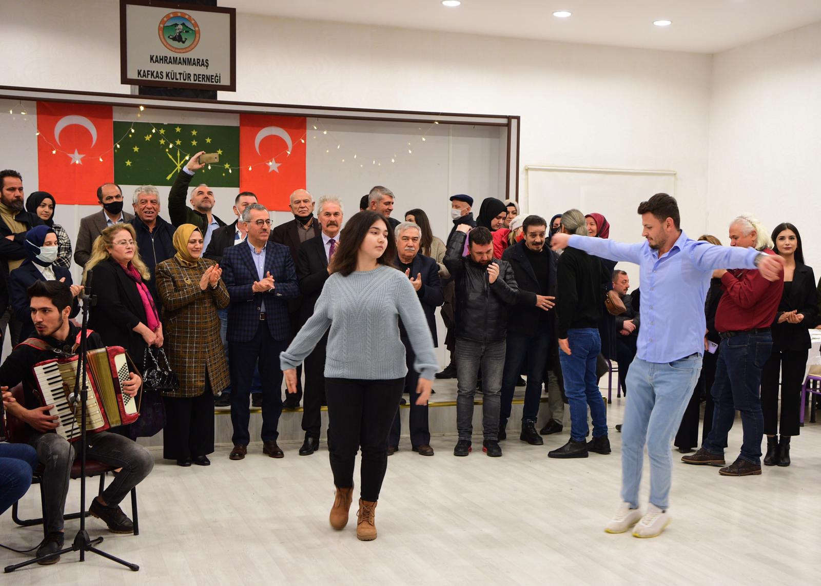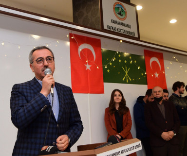Büyükşehir Belediye Başkanı Hayrettin Güngör’ün sonraki durağı ise Kahramanmaraş Kafkas Kültür Derneği tarafından düzenlenen Buluşma Gecesi etkinliği oldu. Etkinlikte konuşan Başkan Güngör, “Ben Kafkas kültürüyle iç içe büyüdüm. Çok değerli kardeşlerim, arkadaşlarım oldu. Bugün de birlik olmanın mutluluğunu yaşıyoruz. Kahramanmaraş olarak birçok kültüre sahip ev sahipliği yapan bir şehir. Hemşehrilerimizin de kendi kültürlerini yaşaması ve yaşatmasını, bunu gelecek nesillere aktarmasını çok önemli görüyorum. Fındık’ta Çerkes Sürgünü Anıtını da bu sebeple açtık. Göksun’da inşa ettiğimiz Arslanbey Millet Konağı ve Bahçesi’nin ardından Milli Mücadele’mizin kahramanlarından Kafkas kökenli Arslan Bey’in konağını da restore ediyoruz. Rabbim birliğimizi daim etsin” diye konuştu.