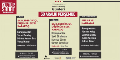 3- Sezai Karakoç Masası: Anılar ve Hatıralar / Yedi Güzel Adam Edebiyat Müzesi / Saat: 16.00 / Moderatör: Saadettin Acar / Konuşmacılar: Rüstem Keleş, Durmuş Günay, Osman Bayraktar