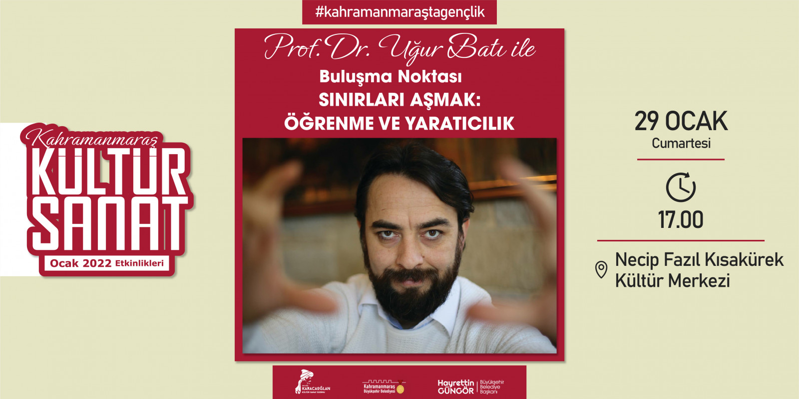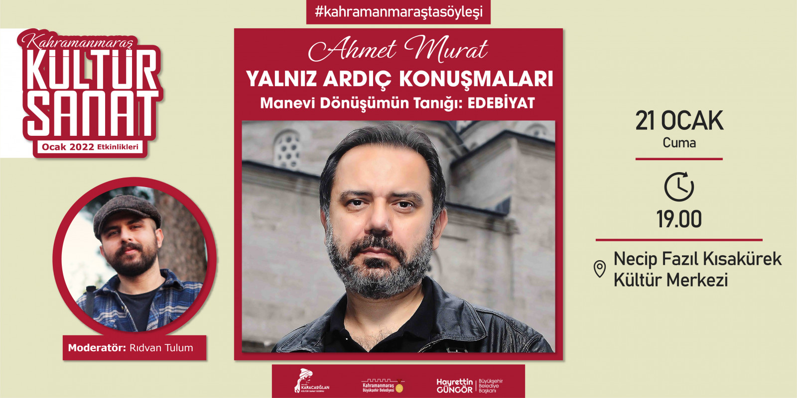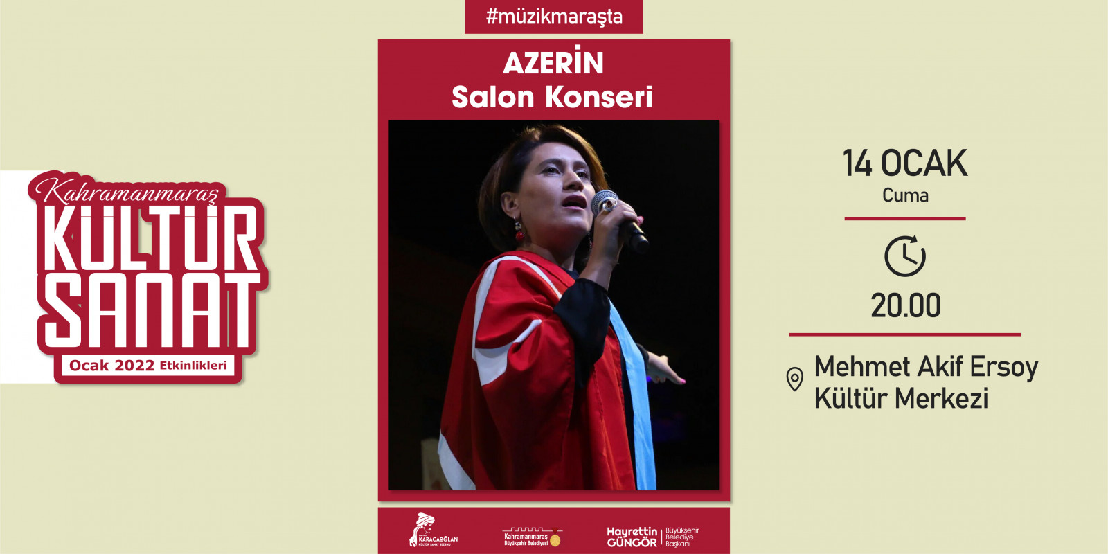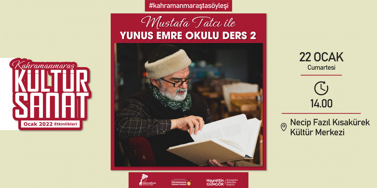 Kahramanmaraş Büyükşehir Belediyesi tarafından geleneksel hale getirilen “Kültür Sanat Sezonu” etkinlikleri Ocak ayında da devam ediyor. 2 – 30 Ocak tarihleri arasında sergiden konserlere, söyleşilerden tiyatrolara kadar toplam 17 etkinlik edebiyatın başkenti Kahramanmaraş’ta sanatseverlerle buluşacak. Takvim kapsamında; Haadi Mousavi ve Şahin Aslan’ın objektifinden çıkan “Elimin Emeği” adlı sergi ziyaretçilerine kapılarını açarken, “Çırpınırdı Karadeniz” eserinin güçlü sesi Azerin konseri kulakların pasını silecek. Minik izleyicileri de etkinliklerde özel bir hafta bekliyor; 5 gün boyunca birbirinden eğlenceli 5 tiyatro gösterisi “Çocuk Festivali” kapsamında sahne alacak. Ocak Kültür Sanat Sezonu etkinlik takvimine https://kahramanmaras.bel.tr/duyuru/2021/11/01/ocak-ayi-kultur-sanat-sezonu-etkinlik-takvimi adresinden ulaşılabiliyor.