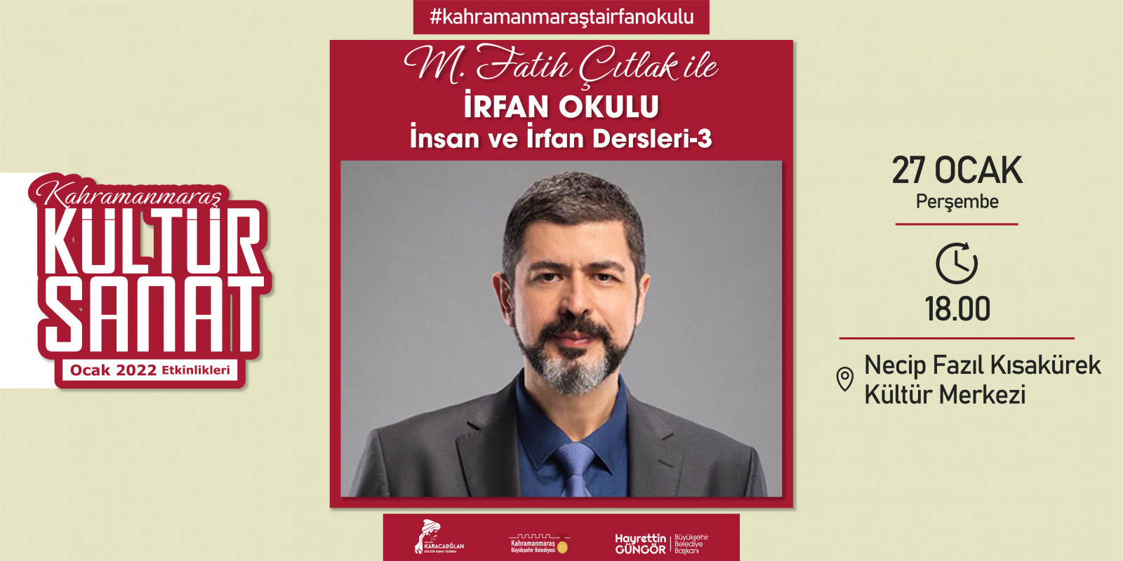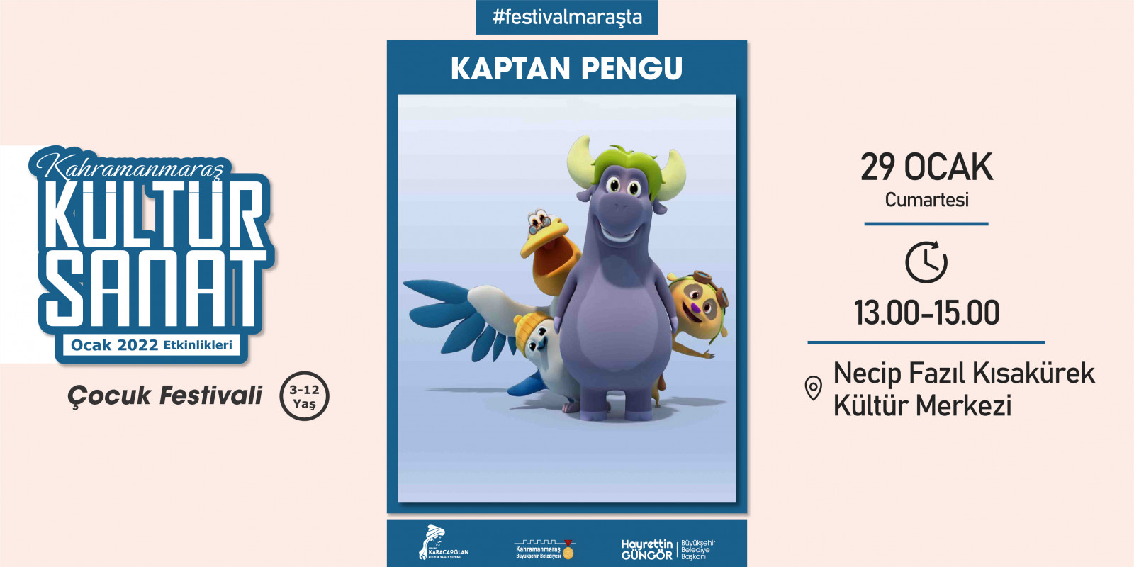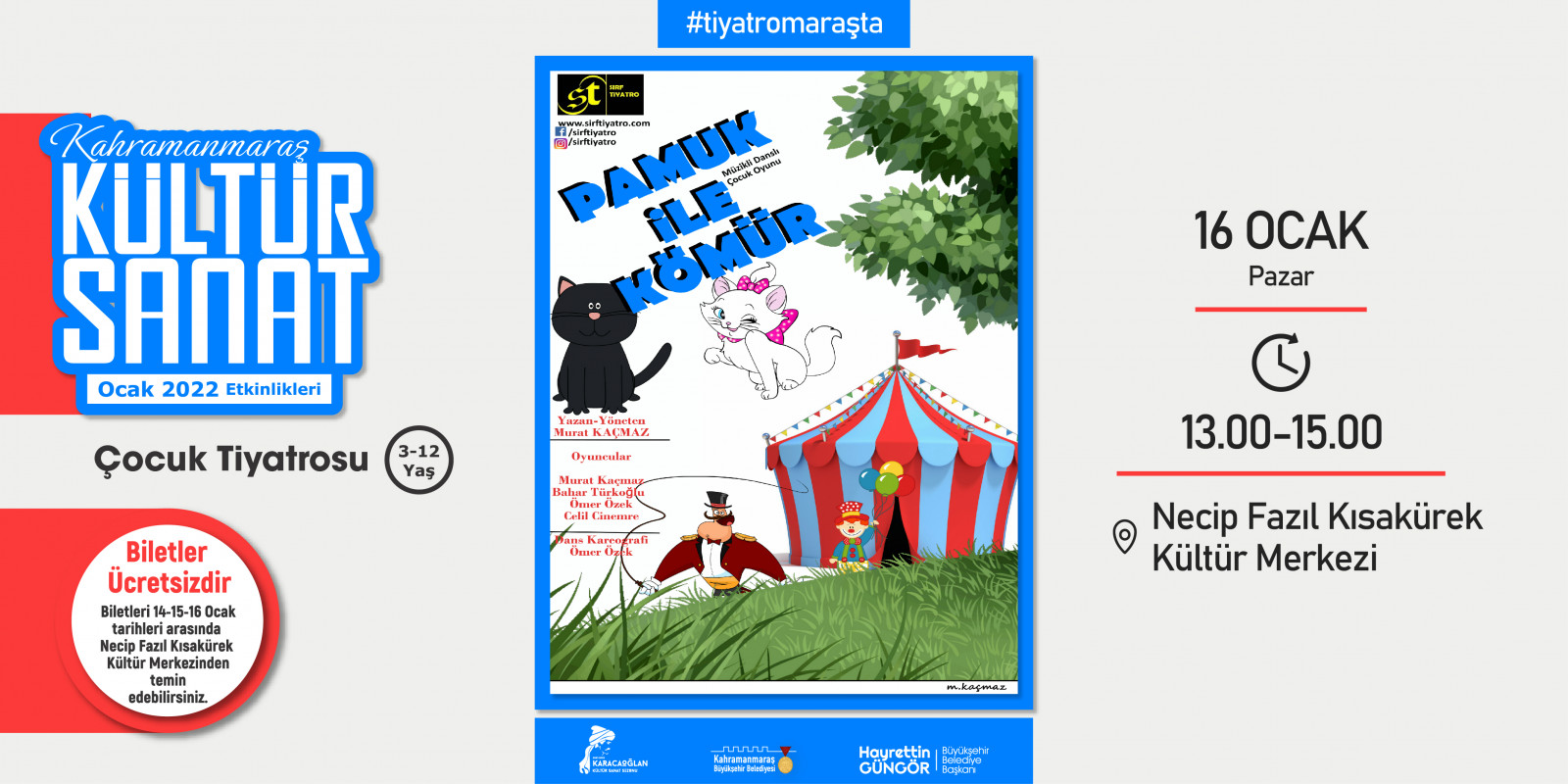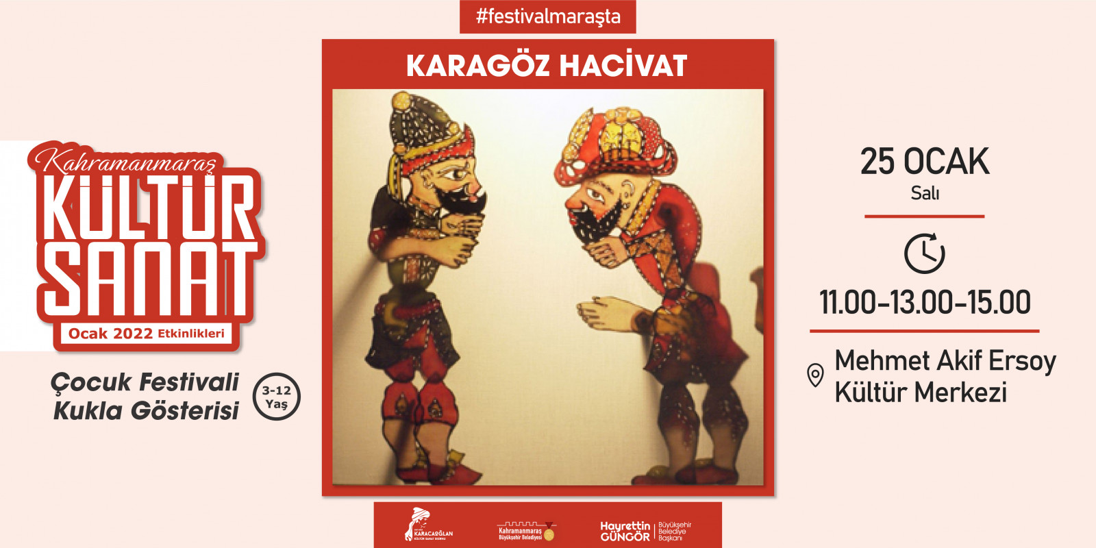 Kahramanmaraş Büyükşehir Belediyesi tarafından geleneksel hale getirilen “Kültür Sanat Sezonu” etkinlikleri Ocak ayında da devam ediyor. 2 – 30 Ocak tarihleri arasında sergiden konserlere, söyleşilerden tiyatrolara kadar toplam 17 etkinlik edebiyatın başkenti Kahramanmaraş’ta sanatseverlerle buluşacak. Takvim kapsamında; Haadi Mousavi ve Şahin Aslan’ın objektifinden çıkan “Elimin Emeği” adlı sergi ziyaretçilerine kapılarını açarken, “Çırpınırdı Karadeniz” eserinin güçlü sesi Azerin konseri kulakların pasını silecek. Minik izleyicileri de etkinliklerde özel bir hafta bekliyor; 5 gün boyunca birbirinden eğlenceli 5 tiyatro gösterisi “Çocuk Festivali” kapsamında sahne alacak. Ocak Kültür Sanat Sezonu etkinlik takvimine https://kahramanmaras.bel.tr/duyuru/2021/11/01/ocak-ayi-kultur-sanat-sezonu-etkinlik-takvimi adresinden ulaşılabiliyor.