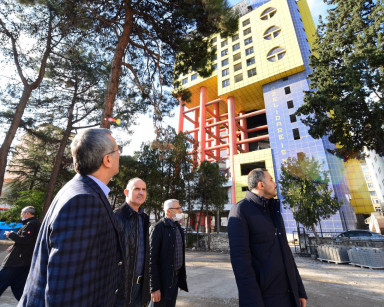 Kahramanmaraş Büyükşehir Belediye Başkanı Hayrettin Güngör, Şehir Meydan Projesi kapsamında yıkımına başlanan Özel İdare İş Merkezi’ndeki çalışmaları yerinde inceledi. Çevre Şehircilik ve İklim Değişikliği Bakanlığı ile işbirliğinde gerçekleştirilen projenin kent estetiği için önemli bir çalışma olacağını vurgulayan Başkan Güngör, “Burası Kahramanmaraş’ımızın tarihi dokusuyla bütünleşik, kardeş şehrimizin adını taşıyan Trabzon Caddesi’ne cephesi olan bir bölge. Yaklaşık 40 dönümlük bu alanda dönüşüm çalışması yürütüyoruz. Eski adliye ve AFAD binamızın yıkımını gerçekleştirdik. Şimdi de 18 katlı ve Google'da da yazdığınızda dünyanın en saçma binası olarak çıkan bu binanın yıkımını gerçekleştiriyoruz. 30 yıl önce o günün şartlarına göre yapılmış, ama yapıldığı günden bu yana hep eleştiri konusu olmuş. Öncelikle binanın civardaki tarihi adayı esas aldığımızda silueti bozması, bir diğeri de çok fonksiyonel olmaması gibi nedenlerle buradaki dönüşüm çalışmalarında bu binanın yıkımına başladık” diye konuştu.