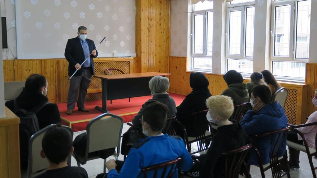 Büyükşehir Belediyesi ekipleri, 7-14 Ocak Görme Engelliler Haftası etkinlikleri kapsamında Ertuğrul Gazi Görme Engelliler Okulu öğrencilerini ziyaret etti. Eğitim verilen öğrencilere beyaz baston da hediye edildi.