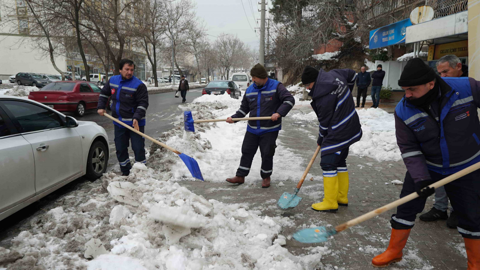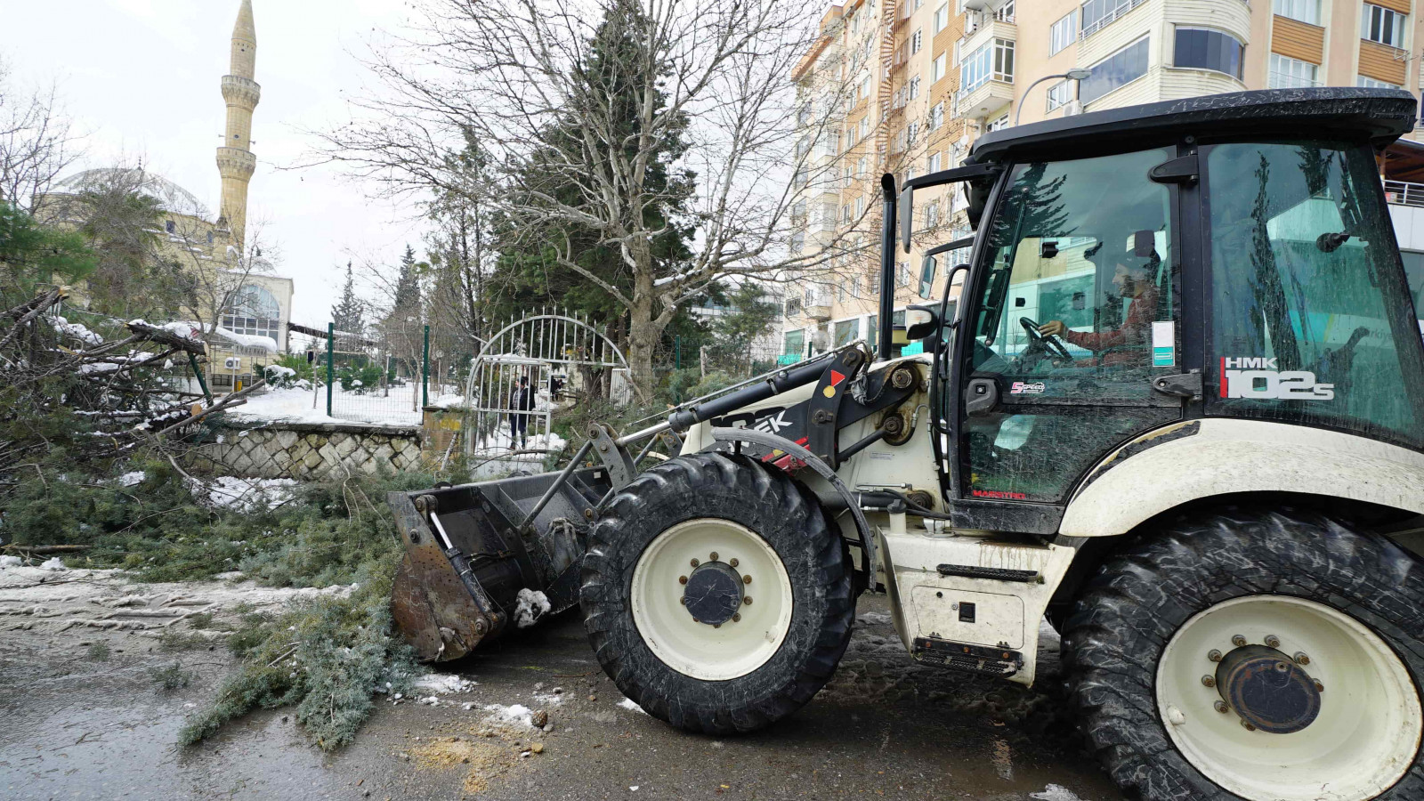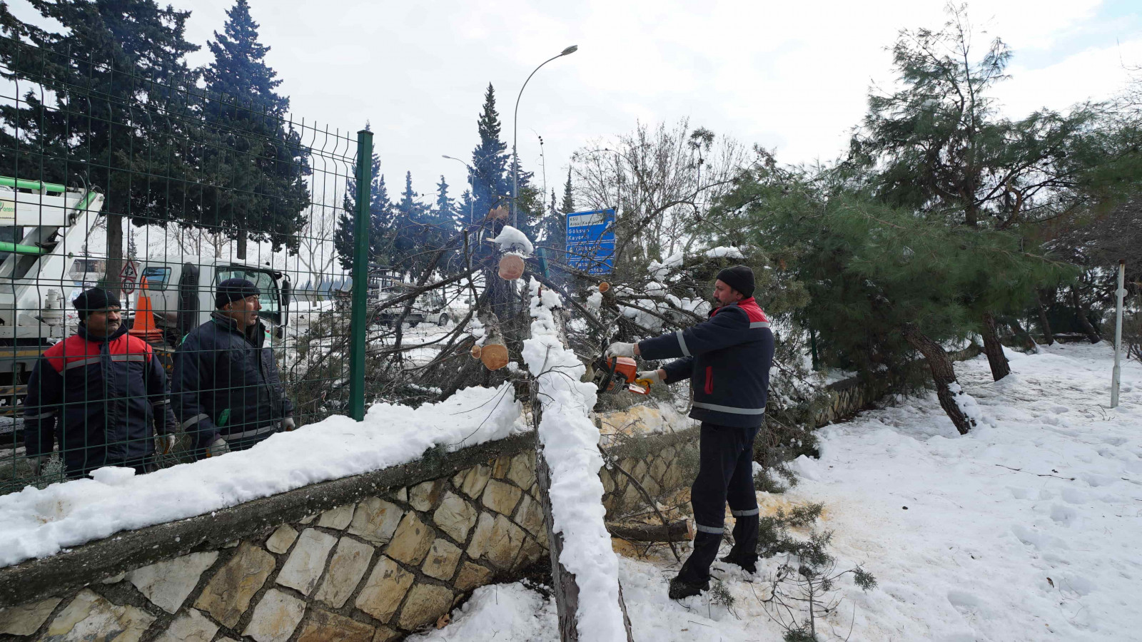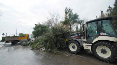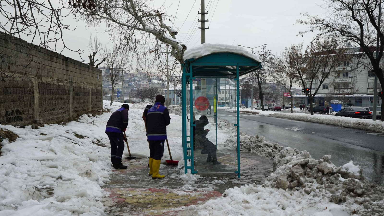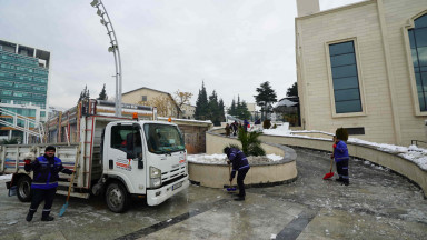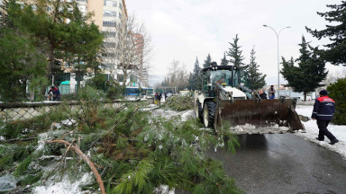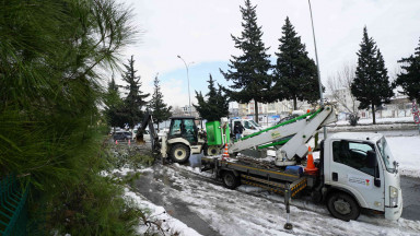 Şehir genelinde bir yandan tuzlama ve yol açma çalışmaları gerçekleştiren Büyükşehir Belediyesi ekipleri, öte yandan yoğun yağışlar nedeniyle yola savrulan nesnelerin kaldırılması ve yaya yollarının açılması için seferber oldu.
