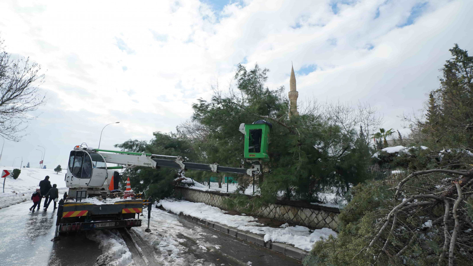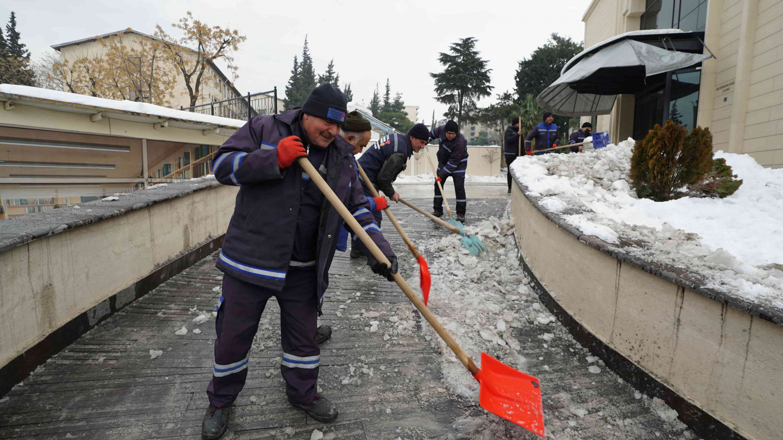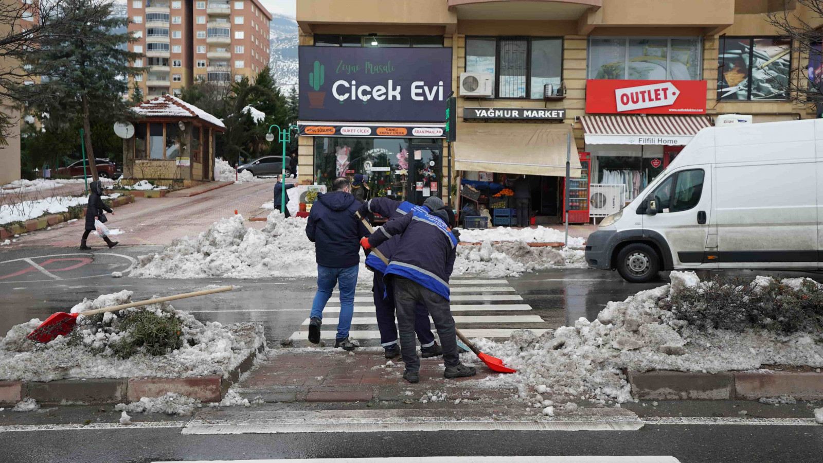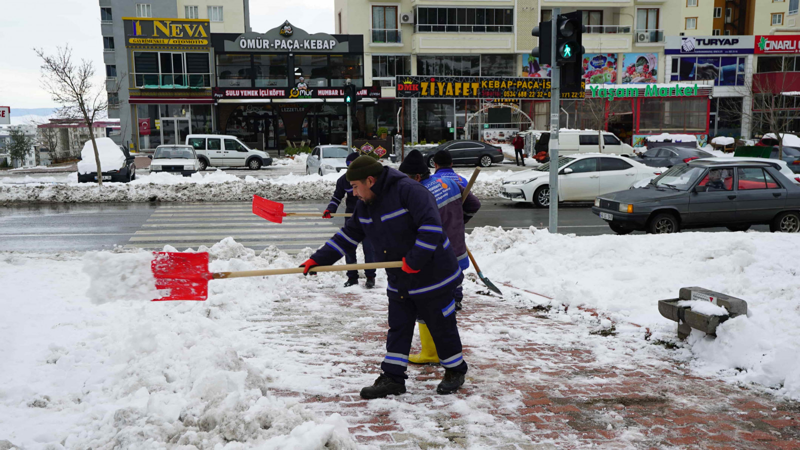Şehir genelinde bir yandan tuzlama ve yol açma çalışmaları gerçekleştiren Büyükşehir Belediyesi ekipleri, öte yandan yoğun yağışlar nedeniyle yola savrulan nesnelerin kaldırılması ve yaya yollarının açılması için seferber oldu.