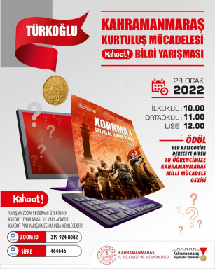 Kahramanmaraş Büyükşehir Belediyesi ve İl Milli Eğitim Müdürlüğü işbirliğiyle düzenlenen “Korkma! İstiklal İlham Verir” projesi eğlence ve bilgi dolu bir etkinliğe ev sahipliği yapacak. Milli Mücadele ve Maraş harbinin farklı yaş gruplarına anlatılması ve 12 Şubat tarihinin ölümsüzleştirilmesi maksadıyla düzenlenen projede, çevrimiçi ve ödüllü bilgi yarışmaları gerçekleştirilecek. 24 – 31 Ocak tarihleri arasındaki yarışmalar İlkokul, Ortaokul ve Lise öğrencilerine yönelik olarak düzenlenecek.