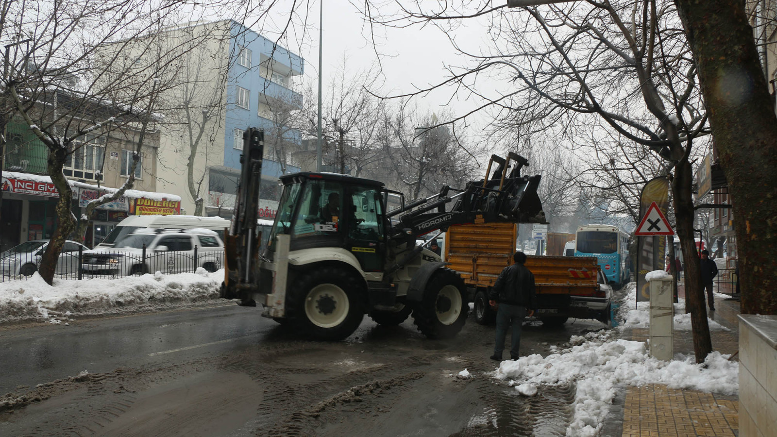 Kentte 600’ün üzerinde personel ve 220 araçla bir yandan tuzlama ve yol açma çalışmaları gerçekleştiren Büyükşehir Belediyesi, öte yandan muhtelif nesnelerin yollardan kaldırılması ve yaya yollarının açılması için seferber oluyor.