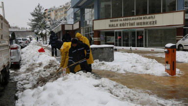 Kahramanmaraş Büyükşehir Belediyesi 220 araç ve 600’ün üzerinde personelle kış şartlarıyla mücadele çalışmalarını sürdürüyor. Yaklaşık 10 gündür yoğun kar yağışının yanı sıra şiddetli fırtına ve rüzgârın yaşandığı kentte, bir yandan yol açma ve buzlanma önleyici uygulamalar gerçekleştirilirken; öte yandan yaya geçitleri, otobüs durakları, yürüyüş yolları, üst geçitler de kardan temizleniyor. Çalışmalarda, yağışlar nedeniyle kırılarak yollara savrulan muhtelif türden nesneler de trafik güvenliğinin sağlanması adına kaldırılıyor. Ekipler, zemindeki buzların yürüyüş yollarında olumsuzluklara neden olmaması için kazıma ve tuz uygulamalarını da aralıksız sürdürüyor.