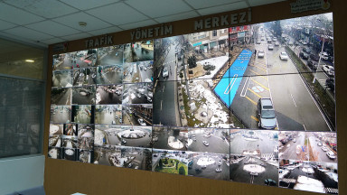 Büyükşehir Belediyesi’ne bağlı Trafik Yönetim Merkezi, şehir genelinde 250 kamera ve 11 Video Mesaj Sistemi’yle trafik akışını kontrol ediyor.
