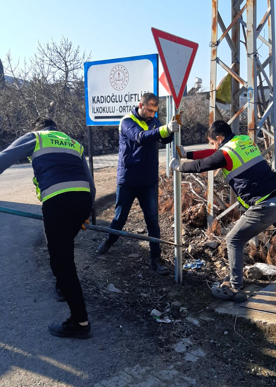 Kahramanmaraş Büyükşehir Belediyesi, yaya ve araç trafiğinde güvenliği artıracak uygulamalarını aralıksız sürdürüyor. Ulaşım Hizmetleri Dairesi Başkanlığı koordinesindeki ekipler tarafından 11 ilçenin tamamında trafik levha ve işaretçilerinde bakım ve onarım çalışmaları gerçekleştiriliyor. Bu kapsamda ekipler, Türkoğlu ilçesinde çalışmalara başladı. İlçe merkezinde, mahallelerde ve grup yollarında bulunan bütün levha ve işaretçiler kontrol edilerek deforme olanlar onarılıyor, kullanılamayacak hale gelenler ise yenisiyle değiştiriliyor. Ayrıca gerekli görülen yerlere ise yeni trafik levha ve işaretçileri ilave ediliyor. Ekipler tarafından, Türkoğlu’na bağlı Cennetpınarı, Bayramgazi, Kelibişler, Kadıoğluçiftliği, Yeniköy, Özbek, Pınarhüyük, Göllühüyük, Hacıbebek, Çobantepe, Kılılı mahallelerinde trafik levha ve işaretçilerinde bakım ve onarım çalışmaları gerçekleştirildi.