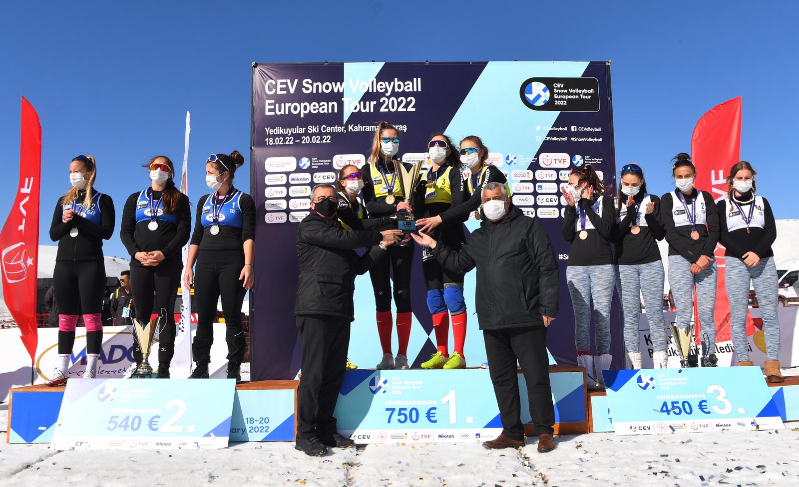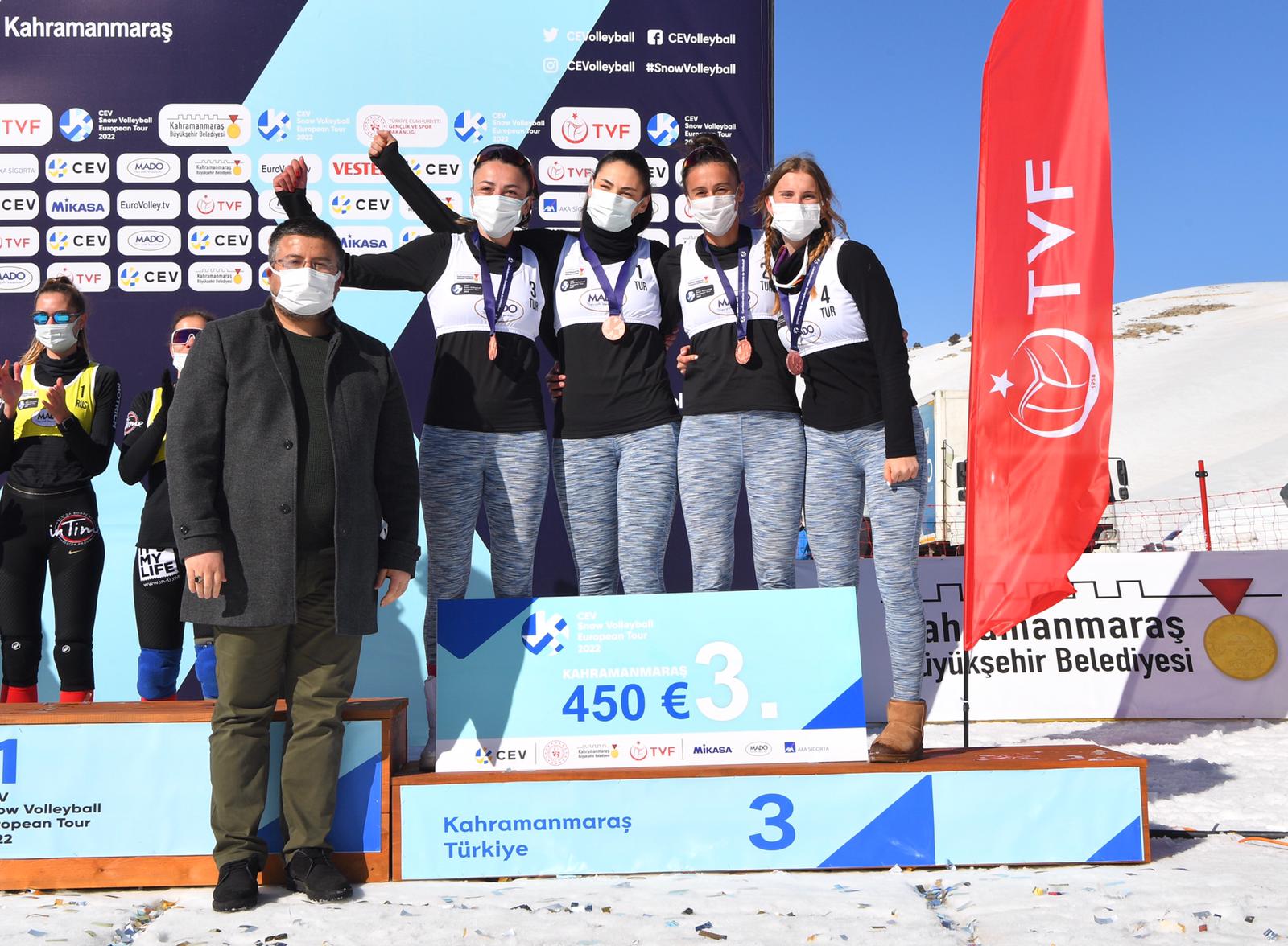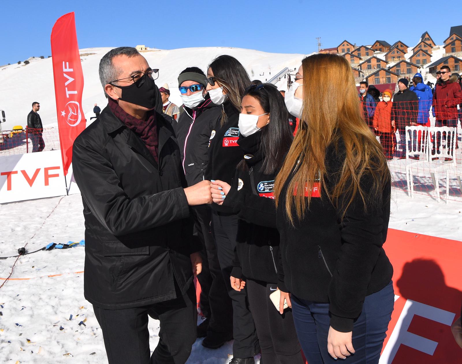 Farklı ülkelerden gelen sporcuların da Yedikuyular Kayak Merkezi’ni çok beğendiğini dile getiren Başkan Güngör, “Yedikuyular Kayak Merkezi’mizde düzenlenen Kar Voleybolu Avrupa Turu müsabakaları tamamlandı. Kadınlar kategorisinde Milli Takımımız üçüncü oldu. Kadın Milli Takımımızı tebrik ediyorum. 150’nin üzerinde sporcu Yedikuyular Kayak Merkezi’mizde mücadele etti. Kahramanmaraş’ımızda ilk defa böyle bir organizasyon düzenlendi. Hemşehrilerimizin ve komşu illerden gelen misafirlerimizin göstermiş olduğu ilgi bizleri gerçekten mutlu etti. Farklı ülkelerden gelen sporcular da şehrimizi ve Yedikuyular Kayak Merkezi’mizi çok beğendiklerini ifade ettiler. İnşallah 3 yıl süreyle Kar Voleybolu Avrupa Turnuvası Yedikuyular Kayak Merkezi’mizde yapılacak. Türkiye Voleybol Federasyonumuza teşekkür ediyorum. Gelecek yıllarda şehrimizde ve Yedikuyular Kayak Merkezi’mizde düzenlenecek olan uluslararası etkinliklerin sayısını artırmayı hedefliyoruz.” ifadelerini kullandı.