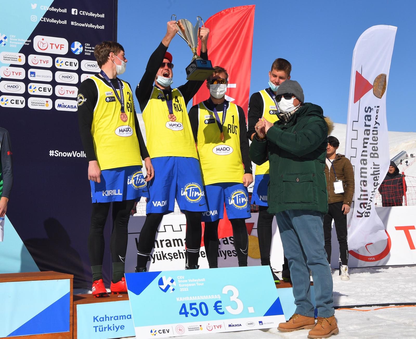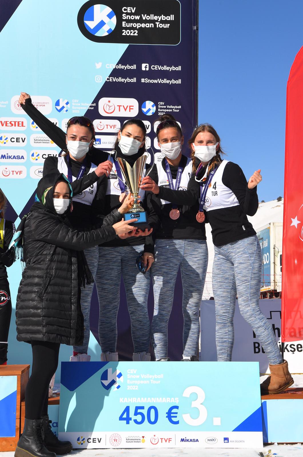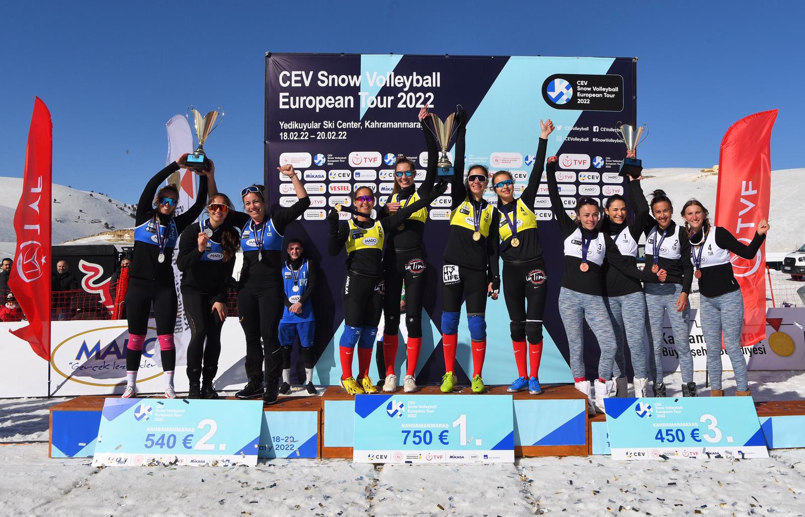 Farklı ülkelerden gelen sporcuların da Yedikuyular Kayak Merkezi’ni çok beğendiğini dile getiren Başkan Güngör, “Yedikuyular Kayak Merkezi’mizde düzenlenen Kar Voleybolu Avrupa Turu müsabakaları tamamlandı. Kadınlar kategorisinde Milli Takımımız üçüncü oldu. Kadın Milli Takımımızı tebrik ediyorum. 150’nin üzerinde sporcu Yedikuyular Kayak Merkezi’mizde mücadele etti. Kahramanmaraş’ımızda ilk defa böyle bir organizasyon düzenlendi. Hemşehrilerimizin ve komşu illerden gelen misafirlerimizin göstermiş olduğu ilgi bizleri gerçekten mutlu etti. Farklı ülkelerden gelen sporcular da şehrimizi ve Yedikuyular Kayak Merkezi’mizi çok beğendiklerini ifade ettiler. İnşallah 3 yıl süreyle Kar Voleybolu Avrupa Turnuvası Yedikuyular Kayak Merkezi’mizde yapılacak. Türkiye Voleybol Federasyonumuza teşekkür ediyorum. Gelecek yıllarda şehrimizde ve Yedikuyular Kayak Merkezi’mizde düzenlenecek olan uluslararası etkinliklerin sayısını artırmayı hedefliyoruz.” ifadelerini kullandı.