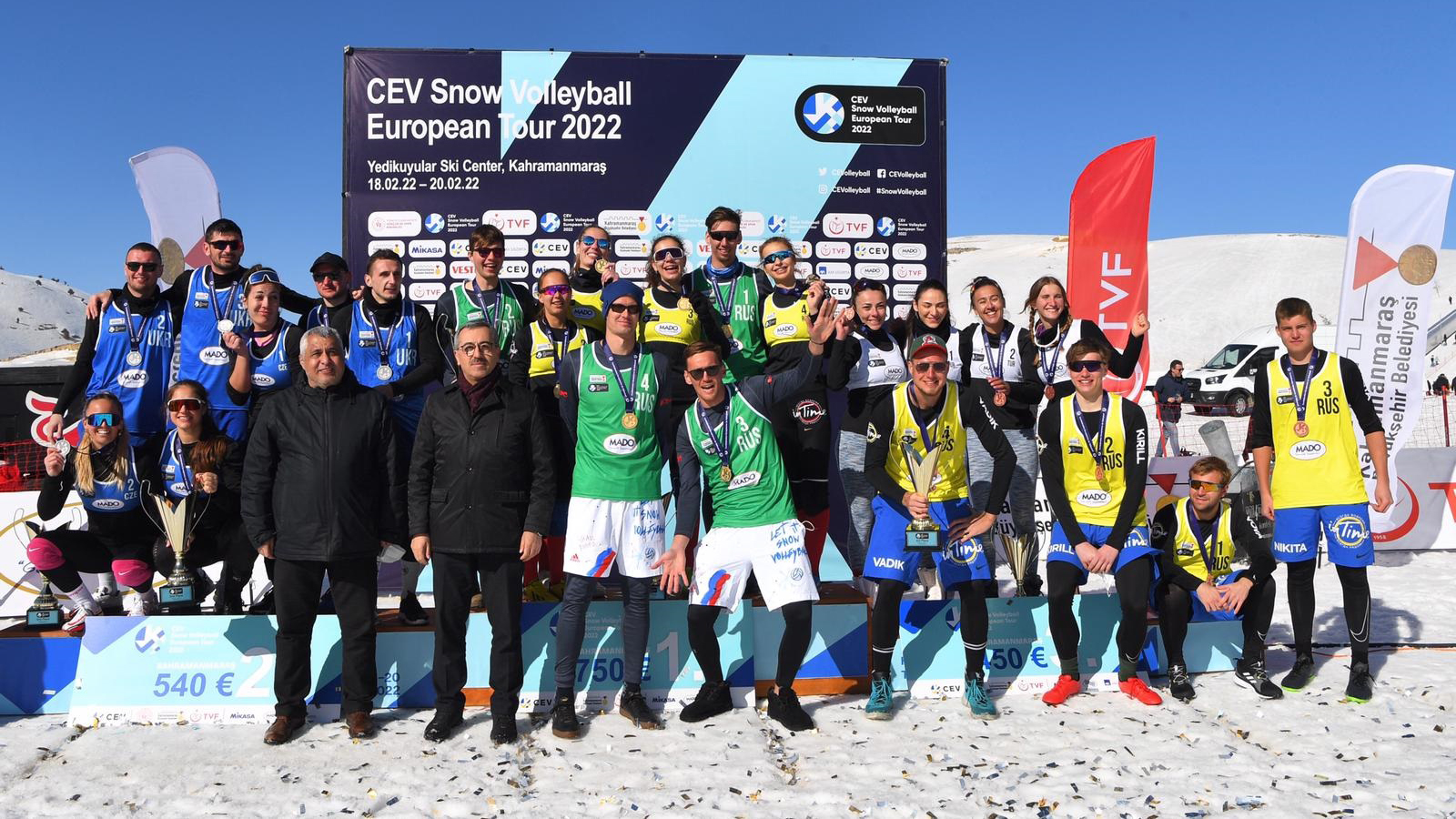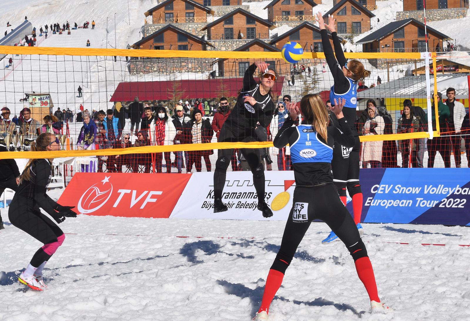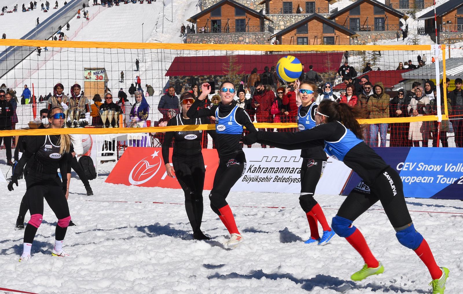 Kahramanmaraş Büyükşehir Belediyesi’nin ev sahipliğinde düzenlenen Kar Voleybolu Avrupa Turu bugün düzenlenen final müsabakalarıyla noktalandı. Toplamda 16 ülkeden 19’u erkek, 8’i kadın olmak üzere toplamda 27 takımın mücadele ettiği turnuvada hem erkeklerde hem de kadınlarda Rusya Milli Takımı birinci etabın şampiyonu oldu. İzleyicilerin yoğun ilgisiyle gerçekleştirilen turnuvada kadınlarda Çek Cumhuriyeti ikinci, Türkiye ise üçüncü oldu. Erkeklerde ikinci Ukrayna, üçüncü ise Rusya oldu. Hafta sonunu fırsat bilerek Yedikuyular Kayak Merkezi’ne akın eden vatandaşlar spor müsabakalarını izledi, kızağa bindi, kayak yaptı. Ayrıca kayak merkezinde sporculara ve misafirlere salep ve dondurma ikram edildi.