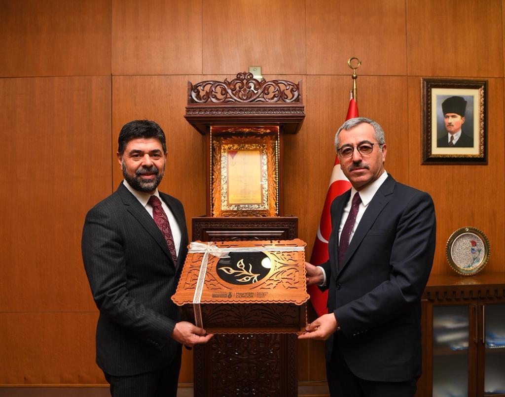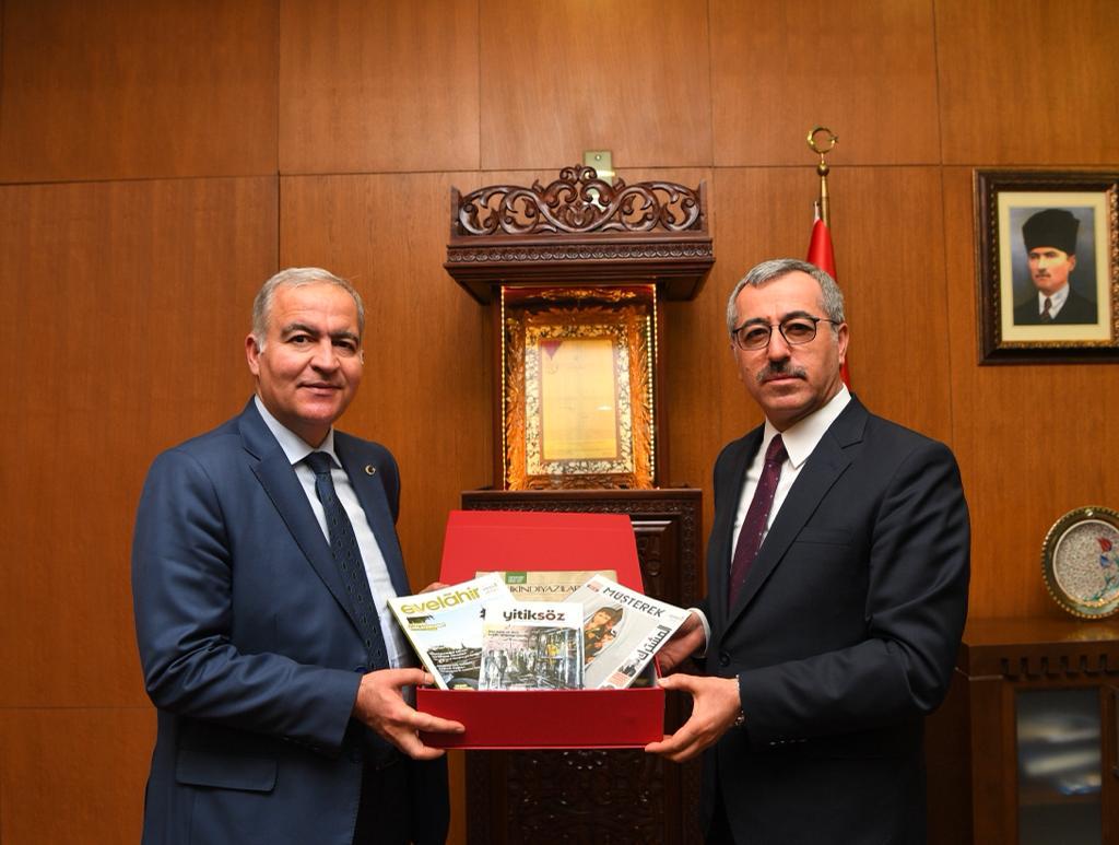 Saha ziyaretinin ardından Büyükşehir Belediye Başkanı Hayrettin Güngör, Aile ve Sosyal Hizmetler Bakan Yardımcısı İsmail Ergüneş’i makamında ağırladı. Gerçekleştirilen ziyarette AK Parti İl Başkanı Fırat Görgel, İl Kadın Kolları Başkanı Gül Çitil Okur, Aile ve Sosyal Hizmetler İl Müdürü Mutlu Kaya, Dulkadiroğlu Belediye Başkanı Necati Okay’ın yanı sıra Sosyal Yardımlar Genel Müdürü Mehmet Demircioğlu da yer aldı. Başkan Güngör, Bakan Yardımcısı Ergüneş ve Genel Müdür Demircioğlu’na Büyükşehir Belediyesi Kültür Yayınları’nı hediye etti. Bakan Yardımcısı İsmail Ergüneş, misafirperverliğinden dolayı Büyükşehir Belediye Başkanı Hayrettin Güngör’e teşekkür etti.