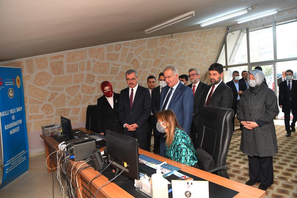 Kahramanmaraş Büyükşehir Belediye Başkanı Hayrettin Güngör, bir dizi ziyaret ve incelemeler gerçekleştirmek için şehre gelen Aile ve Sosyal Hizmetler Bakan Yardımcısı İsmail Ergüneş ile bir araya geldi. Sosyal Yardımlar Genel Müdürü Mehmet Demircioğlu’nun da yer aldığı heyet ilk olarak Kültürpark’ta sürdürülen sosyal ve kültürel hizmetlerle ilgili bilgiler aldı. Büyükşehir Belediye Başkanı Hayrettin Güngör, Yaşlı Bakım ve Koordinasyon Merkezi faaliyetlerinin yanı sıra 65 yaş üzeri vatandaşlara verilen ücretsiz eğitimler ile ilgili bilgiler verdi.