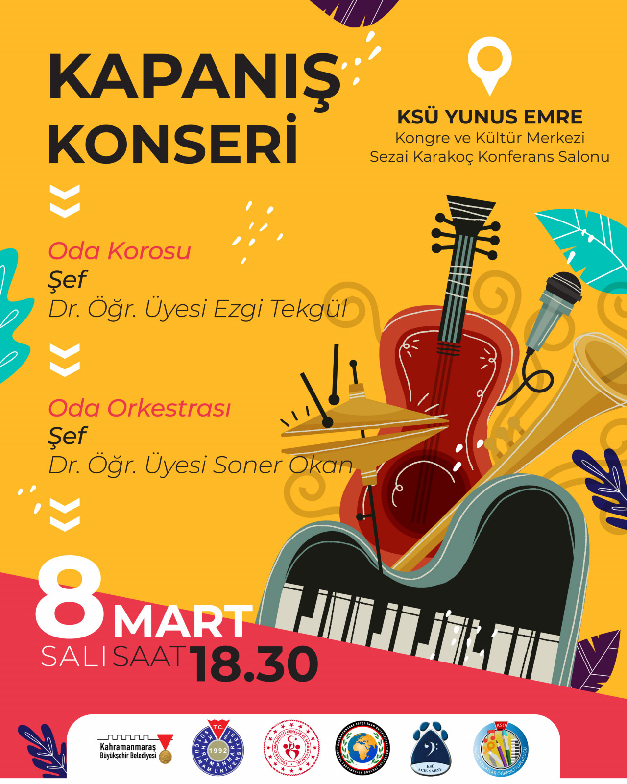 Dünya Kadınlar Günü kapsamında 8 Mart Salı günü (yarın) düzenlenecek diğer bir etkinlikte ise KSÜ akademisyenlerinden Dr. Öğr. Üyesi Ezgi Tekgül ve Soner Okan’ın şefliğinde kapanış konseri dinleyicilerle buluşacak. KSÜ Yunus Emre Kongre ve Kültür Merkezi Sezai Karakoç Konferans Salonu’nda gerçekleştirilecek konser etkinliği saat 18.30’da başlayacak. Büyükşehir Belediyesi’nden etkinliklere ilişkin yapılan açıklamada, “8 Mart Dünya Kadınlar Günü dolayısıyla düzenlenen etkinlikler Salı günü gerçekleştirilecek iki programla noktalanacak. Her iki etkinliğimize de tüm vatandaşlarımız davetlidir” ifadelerine yer verildi.