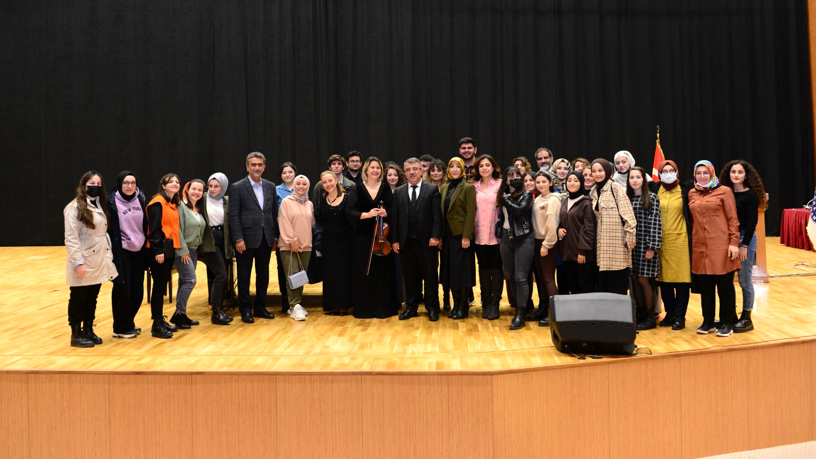 Kahramanmaraş Büyükşehir Belediyesi ve Sütçü İmam Üniversitesi iş birliğiyle Dünya Kadınlar Günü kapsamında düzenlenen etkinlikler ‘Kadın ve Sanat’ adlı söyleşi ve müzik dinletisiyle devam etti. KSÜ Yunus Emre Kongre ve Kültür Merkezi Sezai Karakoç Konferans Salonu’nda gerçekleştirilen etkinliğin konukları Cumhurbaşkanlığı Senfoni Orkestrası İlk Kadın Başkemancısı Doç. Dr. Jülide Yalçın ve Piyanist Doç. Dr. Elif Önal oldu. Etkinlikte KSÜ Rektör Yardımcısı Zekeriya Pak’ın yanı sıra KSÜ öğretim elemanları, öğrenciler ve çok sayıda vatandaş yer aldı. Yalçın ve Önal, sergiledikleri keman ve piyano resitaliyle dinleyicilerden alkış aldı.
