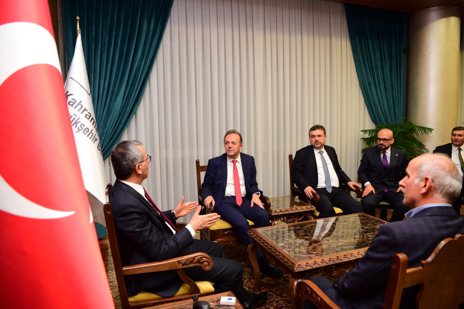 Kahramanmaraş Büyükşehir Belediye Başkanı Hayrettin Güngör, bir dizi programa katılmak için şehre gelen Basın İlan Kurumu Genel Müdürü Rıdvan Duran’ı makamında ağırladı. Büyükşehir Belediyesi Genel Sekreteri Rüstem Keleş, Meclis Üyesi Hanifi Toptaş ve BİK Kahramanmaraş Şube Müdürü Veysel Kara’nın da hazır bulunduğu ziyarette Başkan Güngör, Duran’a ziyaretlerinden duyduğu memnuniyeti ifade etti. BİK Genel Müdürü Rıdvan Duran ise, Büyükşehir Belediye Başkanı Hayrettin Güngör’e nazik ev sahipliği için teşekkür etti.