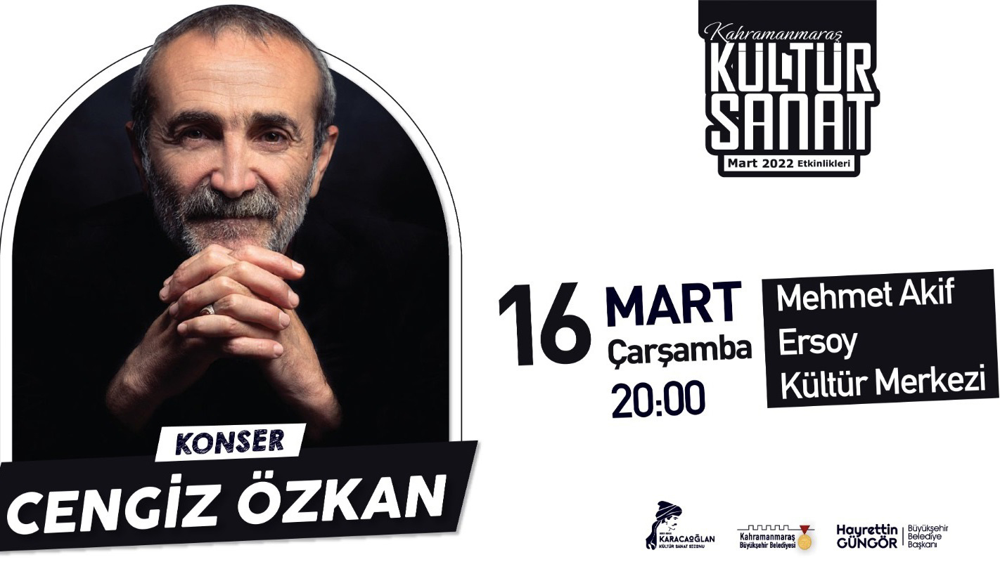 Büyükşehir Belediyesi Mart Kültür Sanat Etkinlikleri kapsamında, Türk Halk Müziği’nin sevilen ismi Cengiz Özkan, 16 Mart Çarşamba günü Kahramanmaraşlılarla bir araya gelecek.