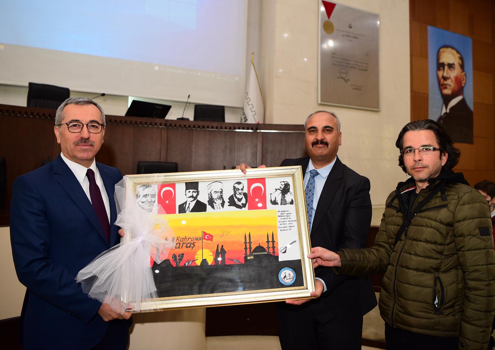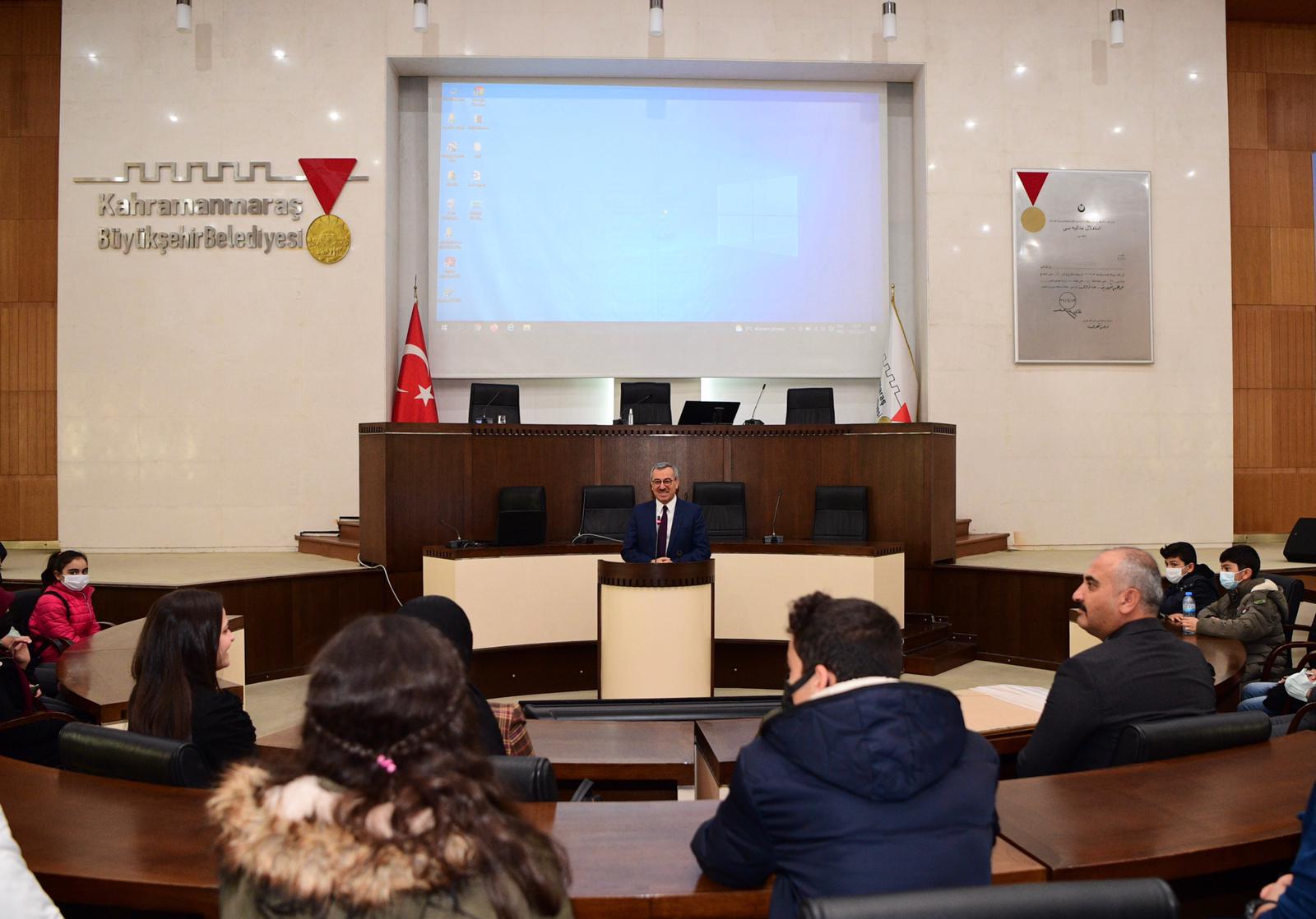 Başkan Hayrettin Güngör, “Bugün Göksun Turna Bucağı Ortaokulu’ndan gelen değerli öğretmenlerimiz ve öğrencilerimizi misafir ettik. Gerçekten hem şehrimiz hem de ülkemizde gerçekleştirilen faaliyetlerle çok yakından ilgileniyorlar. Bu farkındalıkları da bizleri gerçekten çok mutlu etti. Öğrencilerimize şehrimizin gurur kaynağı olan İstiklal Madalyamızı gösterdik ve bu muazzez toprakların ne zorluklarla kazanıldığını anlattık. Gerçekten gençlerimizin de kadim tarihimize olan bağlılığını görmek bizleri ayrıca gururlandırdı. Bu güzel ve anlamlı ziyaretlerinden dolayı kıymetli okul müdürümüz, müdür yardımcımız, öğretmenlerimiz ve öğrencilerimize tekrardan teşekkür ediyorum” ifadelerini kullandı.